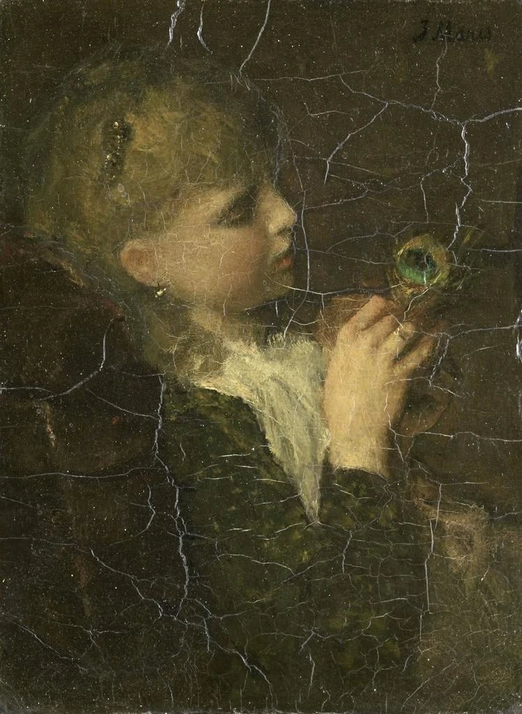 Gemälde Mädchen mit Pfauenfeder - Jacob Maris | Kunstdruck