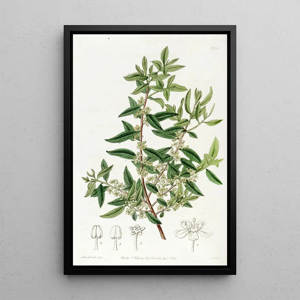 Der Mayten chilien, sorgfältig illustriert von Sydenham Edwards, präsentiert sich als lebendiges Gemälde, das die Schönheit der chilenischen Flora feiert. Die reichen und vielfältigen Farben, von tiefem Grün bis hin zu sanften Beigetönen, spiegeln die Vielfalt der natürlichen Landschaften wider. Die Aquarelltechnik ermöglicht es, die Leichtigkeit der Blätter und die Zartheit der Blumen einzufangen und schafft eine Atmosphäre von Gelassenheit und Frische. Dieses Werk lädt zu einer visuellen Entdeckungsreise ein, bei der jedes botanische Detail hervorgehoben wird und die Komplexität sowie die Harmonie der Natur offenbart. Es wird somit zu einem wahren Tribut an die Vielfalt der Biodiversität.
