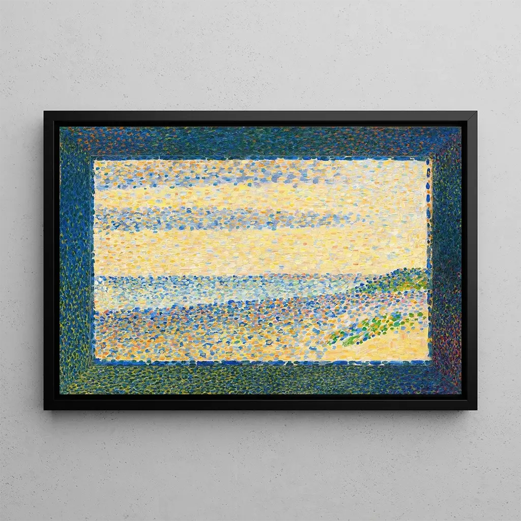 Landschaftsbild Gravelines: eine Symphonie maritimer Farben Das Gemälde Landschaftsbild Gravelines von Georges Seurat ist ein fesselndes Werk, das die Ruhe der französischen Küsten widerspiegelt. Durch pointillistische Farbkleckse gelingt es Seurat, eine ruhige Atmosphäre zu schaffen, in der Meer und Himmel in einem Farbverlauf aus Blau- und Grüntönen aufeinandertreffen. Die gut ausbalancierte Komposition lädt zur Betrachtung ein, während die Figuren im Hintergrund eine menschliche Dimension in diese natürliche Landschaft bringen. Dieses Gemälde, sowohl schlicht als auch komplex, zeugt von Seurats technischer Meisterschaft und seiner Fähigkeit, Licht und Emotion einzufangen. Georges Seurat: der Pionier des Pointillismus Georges Seurat, geboren 1859, ist ein bedeutender Künstler der neo-impressionistischen Bewegung. Seine innovative Herangehensweise an den Pointillismus, bei dem kleine Farbkleckse nebeneinander aufgetragen werden, revolutionierte die Malerei seiner Zeit. Seurat wurde durch wissenschaftliche Theorien über Farbe und Licht beeinflusst, was ihm ermöglichte, Werke mit bemerkenswerter visueller Tiefe zu schaffen. Das Kunstdruck Landschaftsbild Gravelines, das 1890 entstand, veranschaulicht perfekt seinen charakteristischen Stil und sein Interesse an Meereslandschaften, einem Thema, das ihn während seiner gesamten Karriere fasziniert. Eine dekorative Anschaffung mit vielfältigen Vorzügen Der Kunstdruck des Gemäldes Landschaftsbild Gravelines ist eine perfekte dekorative Wahl für alle, die ihrem Interieur einen künstlerischen Akzent verleihen möchten. Ob im Wohnzimmer, im Büro oder im Schlafzimmer, diese Leinwand wird Ihren Raum mit ihrer beruhigenden Farbpalette erhellen. Die Druckqualität sorgt für eine bemerkenswerte Treue zu den Details des Originalwerks, sodass Sie seine ästhetische Anziehungskraft genießen können. Durch die Integration dieses Kunstdrucks in Ihre Dekoration schaffen Sie eine inspirierende Umgebung, die die Schönheit der Natur und die Kunst von Seurat feiert.