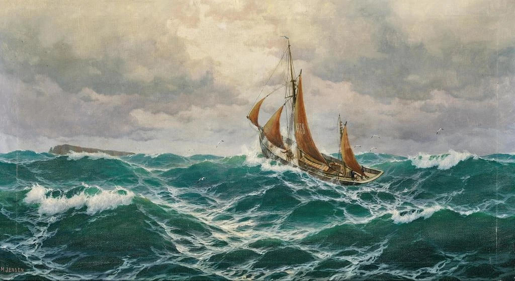 Max Jensen, dänischer Künstler des 19. Jahrhunderts, ist bekannt für seine maritimen Landschaften, die die rohe Schönheit der Natur einfangen. Beeinflusst von der romantischen Bewegung, konzentriert er sich auf die Darstellung der natürlichen Elemente und versucht, Emotionen durch seine Werke zu vermitteln. Jensen hat sich in der Kunstwelt durch seine Fähigkeit etabliert, mit Licht und Farben zu spielen und einzigartige Atmosphären zu schaffen. Seine Arbeit ist in einer Epoche entstanden, in der die nordische Kunst versuchte, sich auf der europäischen Bühne zu behaupten, und er bleibt eine bedeutende Figur dieses künstlerischen Stroms.