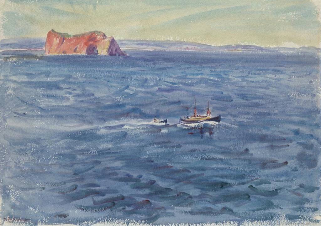 Meereslandschaft mit Boot und Klippe - Dodge MacKnight