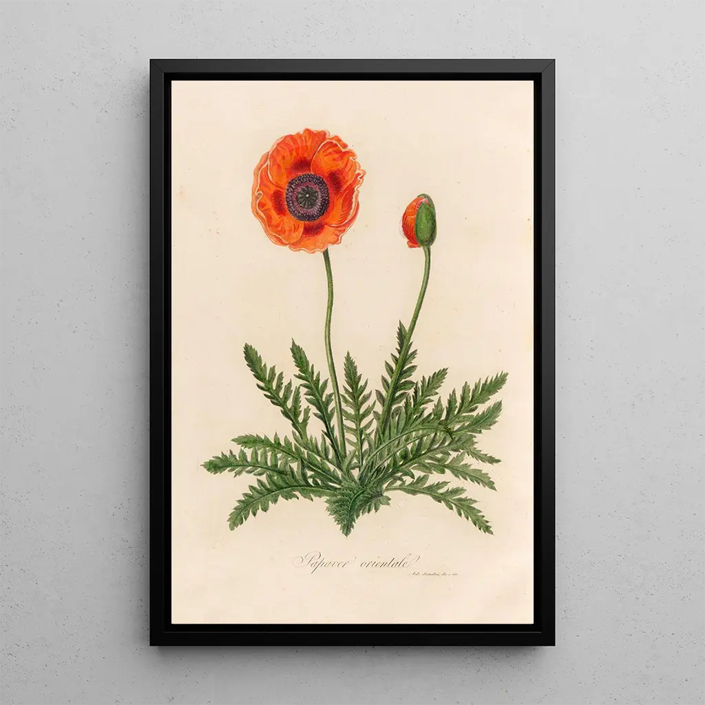 Papaver orientale : eine Explosion von Farben und Leben Das Gemälde Papaver orientale von Gaetano Savi ist eine wahre Ode an die Schönheit der Natur. Dieses fesselnde Werk, das orientalische Mohnblumen darstellt, besticht durch seine lebendigen Farben und seine harmonische Komposition. Die Nuancen von Rot, Rosa und Grün verschmelzen zu einer Atmosphäre, die zugleich fröhlich und beruhigend ist. Die Aquarelltechnik, die mit Feinfühligkeit eingesetzt wird, ermöglicht es, die Leichtigkeit der Blütenblätter und die Zartheit der Blätter wiederzugeben. Jedes Detail ist sorgfältig ausgearbeitet und lädt den Betrachter ein, in eine üppige Blumenwelt einzutauchen, in der das Licht eine wesentliche Rolle bei der Hervorhebung der Formen und Farben spielt. Gaetano Savi : ein Künstler im Herzen des Naturalismus Gaetano Savi ist ein italienischer Maler und Botaniker des 19. Jahrhunderts, dessen Arbeit sich auf die treue Darstellung von Pflanzen und Blumen konzentriert. Beeinflusst vom naturalistischen Bewegung, sucht Savi, die Schönheit der Natur mit wissenschaftlicher Präzision einzufangen. Seine Werke, die oft für botanische Werke geschaffen wurden, zeugen von seiner Liebe zur Flora und seinem Wunsch, diese Leidenschaft an die Öffentlichkeit zu vermitteln. Durch die Integration wissenschaftlicher Elemente in seine Kunst konnte er sich abheben und einen bleibenden Eindruck in der Welt der botanischen Kunst hinterlassen. Sein einzigartiger Ansatz inspiriert weiterhin Kunst- und Botanikkünstler im Laufe der Zeit. Eine dekorative Anschaffung mit vielfältigen Vorteilen Die kunstdruck-Reproduktion des Gemäldes Papaver orientale ist eine ideale Wahl, um Ihr Zuhause zu verschönern, sei es im Wohnzimmer, im Büro oder im Schlafzimmer. Die Druckqualität und die Treue zum Originalwerk garantieren einen unbestreitbaren ästhetischen Reiz. Dieses Bild, mit seinen leuchtenden Farben und seiner ruhigen Atmosphäre, bringt Frische und Vitalität in Ihre Dekoration. Mit der Wahl dieses Leinwandbildes entscheiden Sie sich für ein Stück, das nicht nur Ihren Raum bereichert, sondern auch die vergängliche Schönheit der Natur widerspiegelt und so eine inspirierende und beruhigende Umgebung schafft.