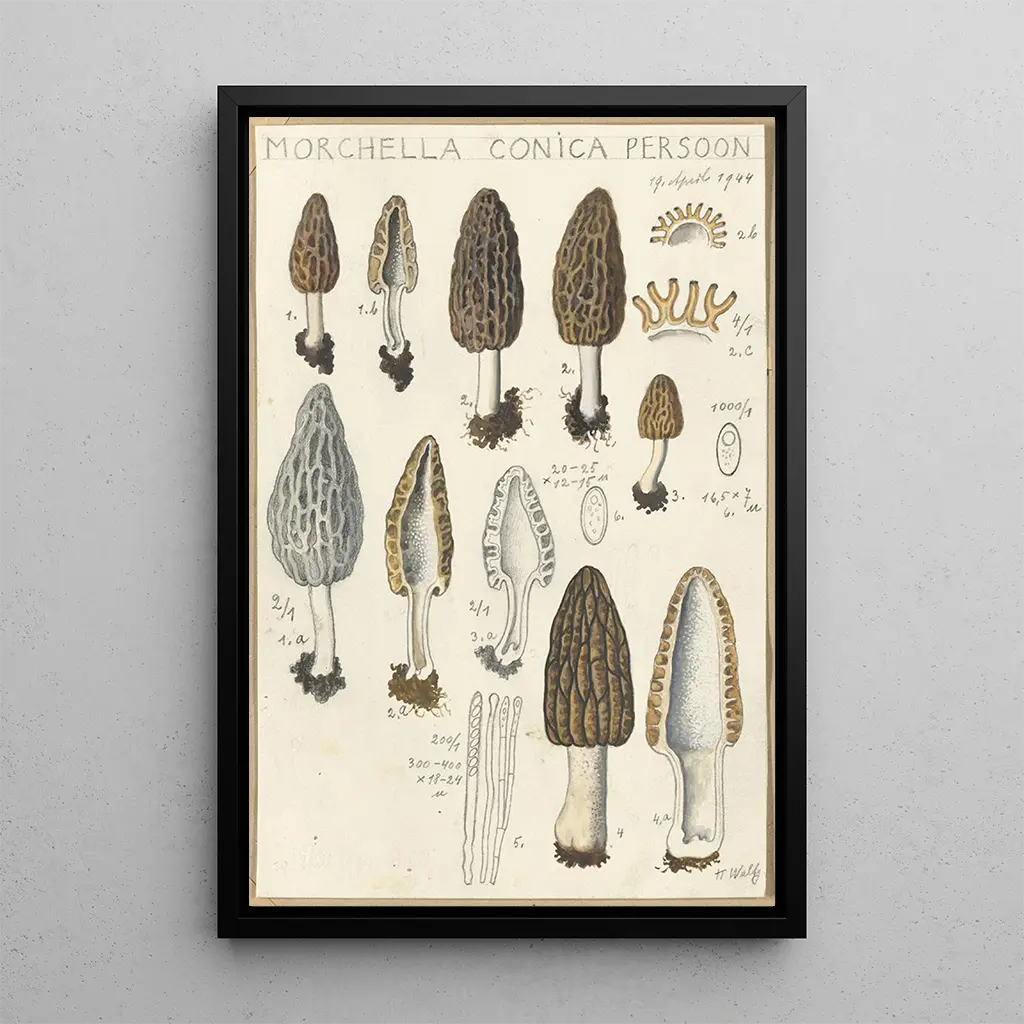 Der kunstdruck des 'Morchella conica persoon' ist eine perfekte Ergänzung, um Ihr Zuhause zu verschönern, sei es im Wohnzimmer, im Büro oder im Schlafzimmer. Seine außergewöhnliche Druckqualität und die Treue zum Originalwerk garantieren ein bereicherndes visuelles Erlebnis. Dieses Bild, mit seiner einzigartigen Ästhetik, bringt einen Hauch von Natur und Ruhe in Ihre Dekoration und weckt gleichzeitig Interesse und Neugier. Mit der Wahl dieses Kunstdrucks verleihen Sie Ihrem Raum eine künstlerische Dimension, die die Schönheit der Pilze und die Vielfalt des wilden Lebens feiert.