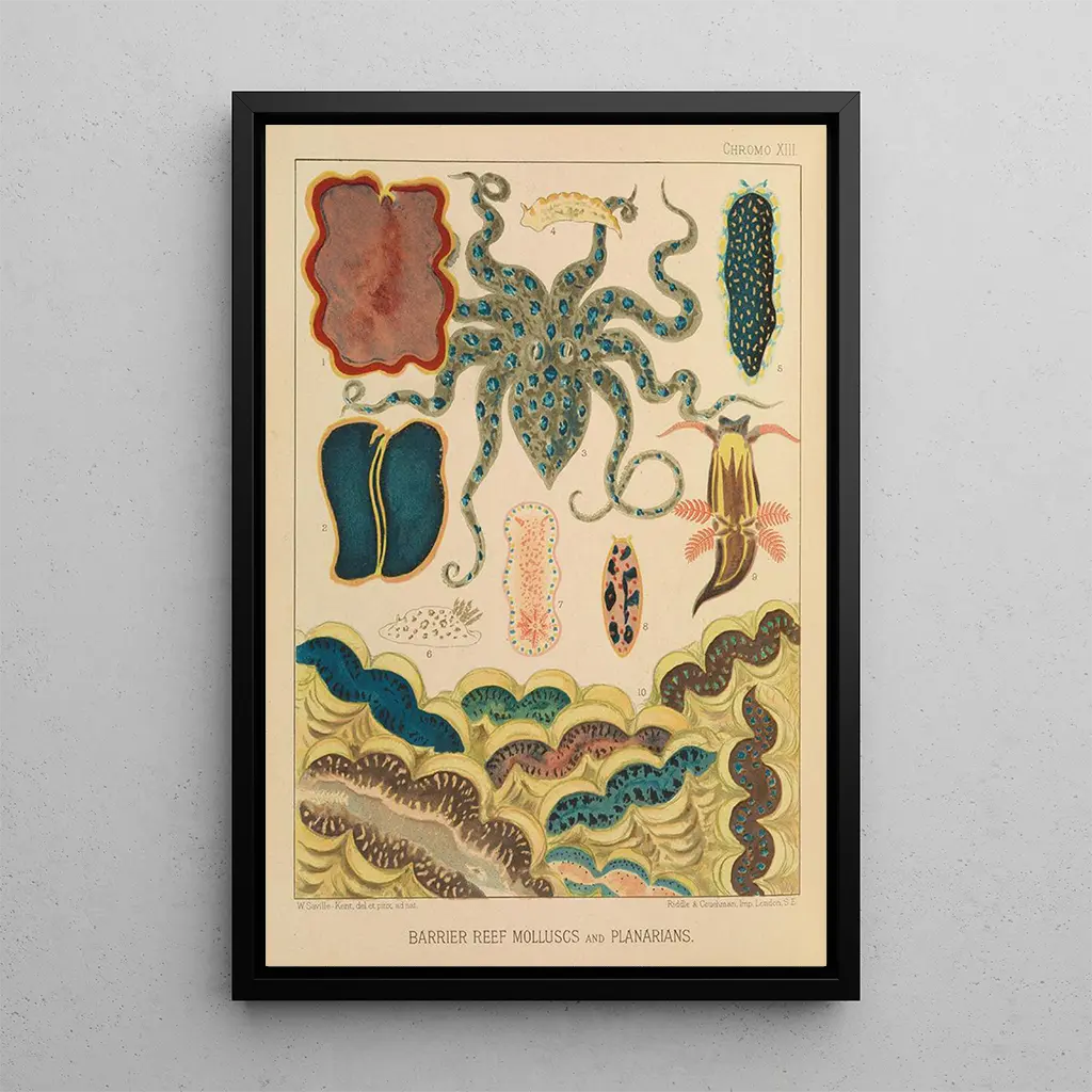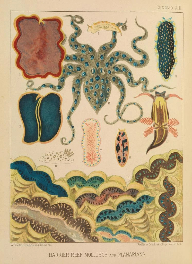 Kunstdruck Muscheln und Plattwürmer des Korallenriffs - William Saville-Kent | Kunstdruck