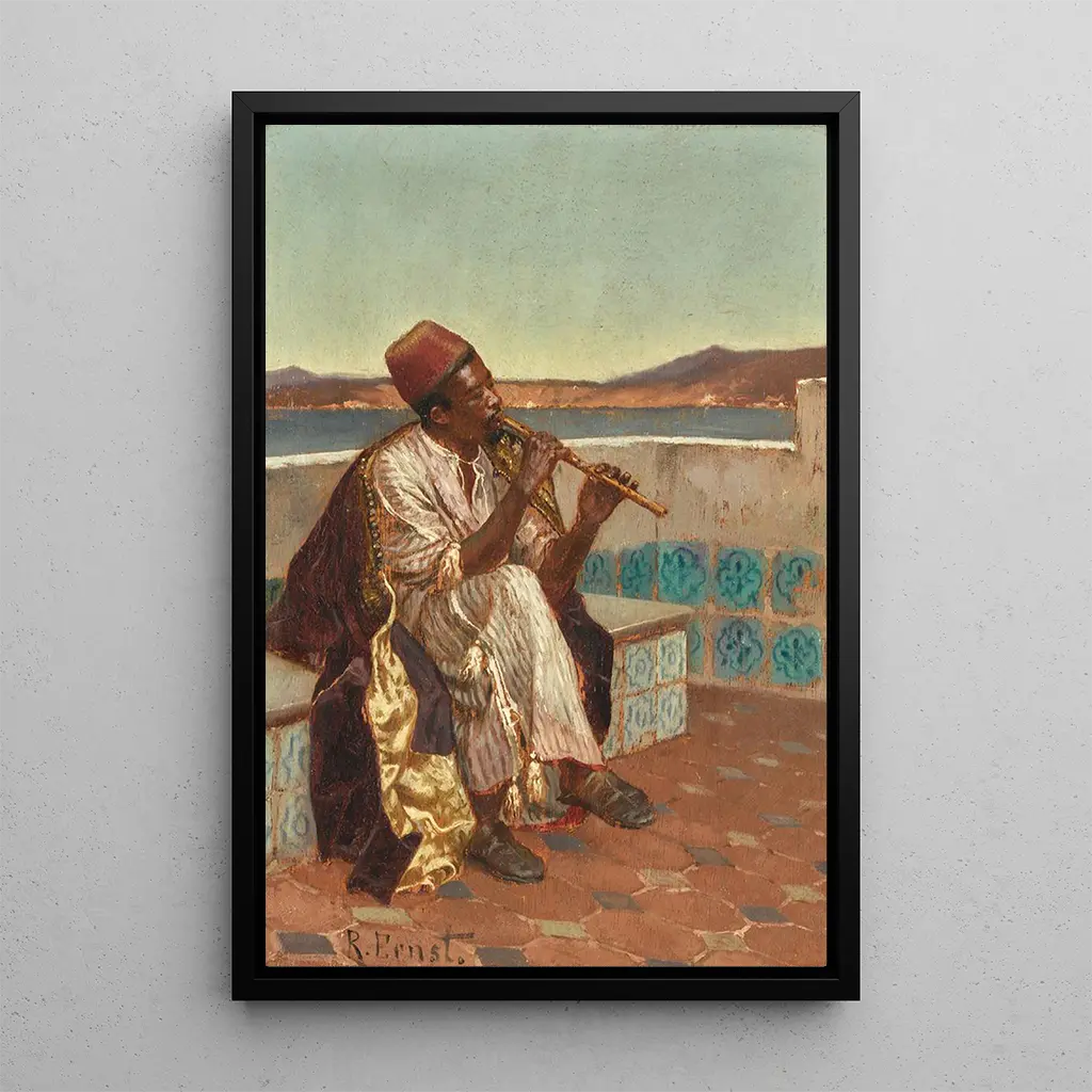 Musicien sur la terrasse : ein Moment voller Melodie und Licht In "Musicien sur la terrasse" fängt Rudolf Ernst einen Augenblick des Lebens ein, in dem Musik und Geselligkeit aufeinandertreffen. Das Gemälde zeigt einen Musiker, der auf einer Terrasse sitzt und leidenschaftlich sein Instrument spielt. Das goldene Licht des Sonnenuntergangs taucht die Szene in warmes Licht, schafft zarte Schatten und hebt die lebendigen Farben der Kleidung und der umgebenden Elemente hervor. Die Atmosphäre ist sowohl fröhlich als auch kontemplativ und lädt den Betrachter ein, die Emotionen dieses geteilten Moments zu spüren. Das Werk beschreibt die Schönheit menschlicher Begegnungen und die Magie der Musik, wesentliche Elemente der mediterranen Kultur. Rudolf Ernst : ein Entdecker orientalischer Kulturen Rudolf Ernst, österreichischer Maler des 19. Jahrhunderts, ist bekannt für seine Darstellungen orientalischer Szenen, inspiriert von seinen Reisen nach Nordafrika und im Nahen Osten. Sein Stil, der Realismus und impressionistische Einflüsse verbindet, ermöglicht es ihm, die Farbvielfalt und Texturen der Landschaften und Figuren, die er malt, einzufangen. Im Herzen der orientalistischen Bewegung hat Ernst das Publikum mit seinen ausdrucksstarken Werken begeistert, die seine Bewunderung für die Kulturen, denen er begegnet ist, widerspiegeln. "Musicien sur la terrasse" veranschaulicht perfekt sein Talent, Lebensmomente voller Poesie und Authentizität festzuhalten. Eine dekorative Anschaffung mit vielfältigen Vorzügen Eine Reproduktion von "Musicien sur la terrasse" für Ihr Zuhause zu wählen, bedeutet, einen künstlerischen Akzent hinzuzufügen, der Freude und Geselligkeit evoziert. Dieses Gemälde, ideal für ein Wohnzimmer oder einen Musikraum, schafft eine warme und einladende Atmosphäre. Die Qualität der Reproduktion garantiert eine Treue zu den Details und Farben des Originalwerks, sodass Sie seine ästhetische Anziehungskraft voll genießen können. Durch die Integration dieses Leinwandbildes in Ihre Dekoration verleihen Sie Ihrem Raum eine künstlerische Dimension, die zur Träumerei und Flucht einlädt, und feiern gleichzeitig die Schönheit der Musik und menschlicher Begegnungen.