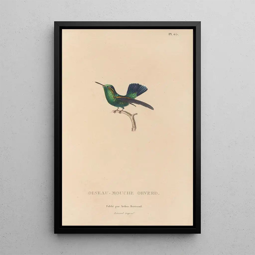 Die kunstdruck Histoire naturelle des oiseaux-mouches Pl66 evoziert die Leichtigkeit und Eleganz dieser faszinierenden Vögel. Die lebendigen Farben und die minutösen Details dieses Werks fangen die Essenz dieser luftigen Kreaturen ein, die in einer Welt der Schönheit zu schweben scheinen. Die Gravurtechnik von René Primevère Lesson ermöglicht es, jede Feder mit bemerkenswerter Präzision darzustellen und schafft eine fast magische Atmosphäre. Dieses Leinwandbild lädt zur Flucht ein, zur Entdeckung eines Universums, in dem Natur und Kunst sich vereinen, um die Pracht der Vogelwelt zu feiern.