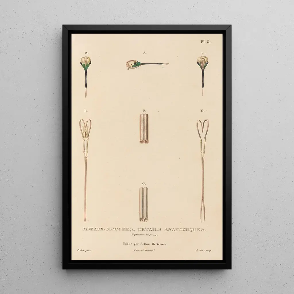 Histoire naturelle des oiseaux-mouches Pl82 : eine Hommage an die Biodiversität Die kunstdruck Histoire naturelle des oiseaux-mouches Pl82 lädt dazu ein, eine bunte und faszinierende Welt zu entdecken. In diesem Werk von René Primevère Lesson sind die kolibris mit bemerkenswerter Präzision dargestellt, wobei ihre schillernden Gefieder und dynamischen Posen hervorgehoben werden. Die Farbnuancen, die von leuchtendem Rot bis zu tiefem Grün reichen, schaffen eine lebendige und fröhliche Atmosphäre. Die vom Künstler verwendete Gravurtechnik ermöglicht es, die Zartheit dieser Vögel einzufangen und gleichzeitig ein Gefühl von Leichtigkeit und Anmut zu vermitteln. René Primevère Lesson : ein Meister der ornithologischen Illustration René Primevère Lesson, aktiv im 19. Jahrhundert, ist bekannt für seine Beiträge zur Ornithologie und Kunst. Seine Leidenschaft für Vögel führte ihn dazu, verschiedene Kontinente zu erkunden, wo er eine Vielzahl von Arten beobachten und illustrieren konnte. Sein Ansatz verbindet wissenschaftliche Strenge mit künstlerischer Sensibilität, wodurch seine Werke Referenzen in diesem Bereich sind. Lesson konnte das Interesse der Öffentlichkeit an Biodiversität wecken, und seine Illustrationen inspirieren weiterhin Naturfreunde und zeitgenössische Künstler. Eine dekorative anschaffung mit vielfältigen vorteilen Der kunstdruck Histoire naturelle des oiseaux-mouches Pl82 ist eine dekorative Wahl, die Kunst- und Naturliebhaber begeistern wird. Ideal, um ein Wohnzimmer, Büro oder Schlafzimmer zu verschönern, bringt diese Leinwand einen Farbtupfer und Vitalität in Ihren Raum. Die Druckqualität garantiert eine detailgetreue Wiedergabe der Originalkunstwerke und Farben, während sie gleichzeitig eine unverkennbare visuelle Anziehungskraft bietet. Durch die Integration dieses Werks in Ihre Dekoration feiern Sie nicht nur die Schönheit der Vögel, sondern auch die Harmonie der Natur in Ihrem Alltag.