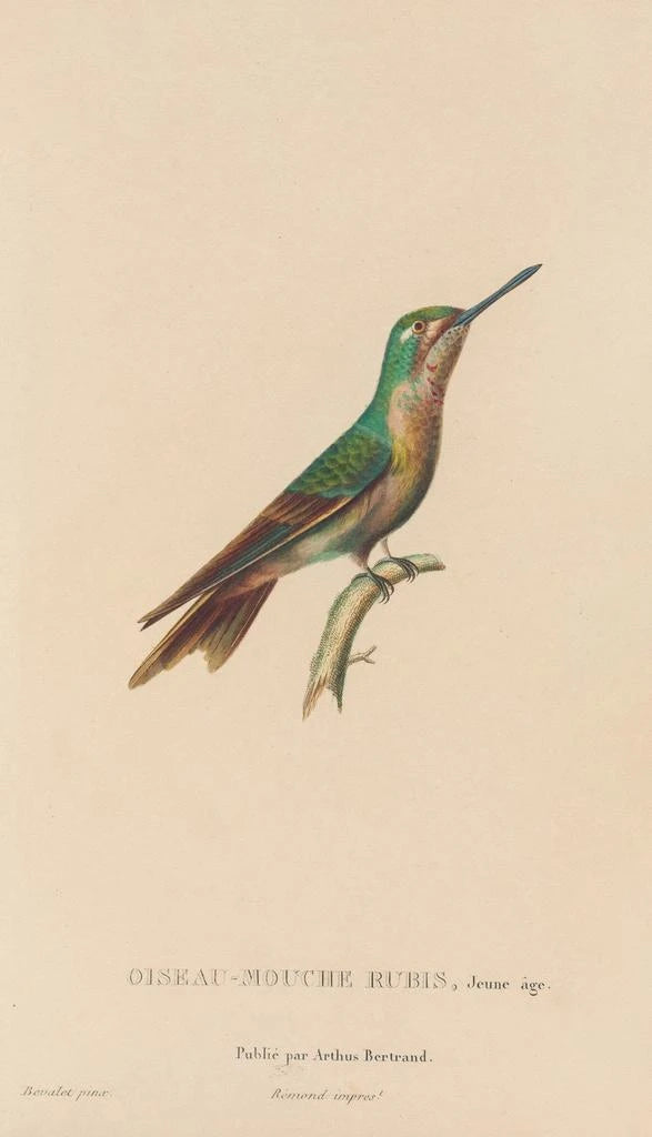 René Primevère Lesson, Naturforscher und Ornithologe des 19. Jahrhunderts, prägte seine Zeit durch seine vertieften Studien der Vögel. Beeinflusst von den wissenschaftlichen Expeditionen seiner Epoche, widmete er sein Leben der Klassifikation und Darstellung der Vogelarten. Sein Werk, Histoire naturelle des oiseaux-mouches, zeugt von einem wachsenden Interesse an Biodiversität und der Notwendigkeit, diese zu bewahren. Lesson trug nicht nur zur Erweiterung ornithologischer Kenntnisse bei, sondern ebnete auch den Weg für einen künstlerischen Ansatz in der Wissenschaft, der sorgfältige Beobachtung mit Ästhetik verbindet.
