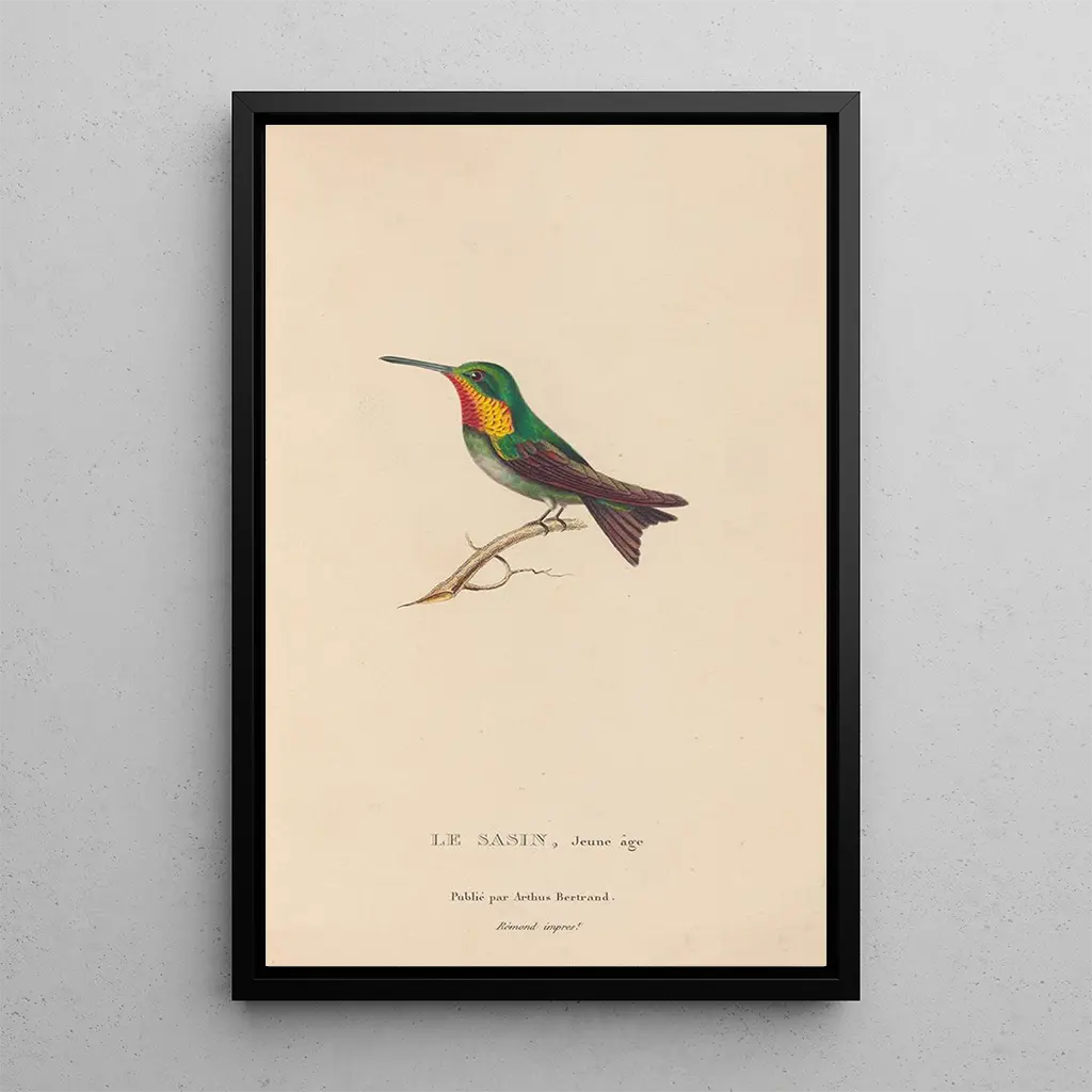 Die reproduction Histoire naturelle des oiseaux-mouches Pl68 bietet eine faszinierende Sicht auf diese luftigen Kreaturen und fängt ihre ätherische Essenz mit bemerkenswerter Präzision ein. Die zarten Nuancen und die minutösen Details der Gefieder offenbaren die fragile Schönheit dieser Vögel. Die sorgfältig inszenierte Komposition lädt zum Staunen und zur Kontemplation ein. Jeder Vogel scheint in der Luft zu schweben, bereit zum Abflug, und schafft eine Atmosphäre von Leichtigkeit und Freiheit, die den Betrachter verzaubert. René Primevère Lesson: Kunst im Dienste der Wissenschaft René Primevère Lesson, eine ikonische Figur der Ornithologie im 19. Jahrhundert, verstand es meisterhaft, Kunst und Wissenschaft zu verbinden. Seine Illustrationen, die im Rahmen der Histoire naturelle entstanden sind, spiegeln nicht nur sein künstlerisches Talent wider, sondern auch seinen Wunsch, die Biodiversität zu dokumentieren. Beeinflusst von den wissenschaftlichen Expeditionen seiner Zeit, trug er dazu bei, wenig erforschte Arten bekannt zu machen. Diese kunstdrucke zeugen von seinem Engagement für die Natur und seiner Rolle bei der Weiterentwicklung ornithologischer Kenntnisse, während sie gleichzeitig für die breite Öffentlichkeit zugänglich bleiben. Ein dekoratives Kunstwerk mit vielfältigen Vorzügen Der kunstdruck Histoire naturelle des oiseaux-mouches Pl68 ist eine wertvolle Ergänzung für jede Innendekoration, sei es im Wohnzimmer, Büro oder Schlafzimmer. Seine Druckqualität und die Liebe zum Detail machen ihn zu einem fesselnden Bild, das das Auge anzieht und den Raum bereichert. Mit diesem Leinwandbild bringen Sie einen Hauch von Natur und Eleganz in Ihre Umgebung. Die ästhetische Anziehungskraft dieses Kunstwerks liegt in seiner Fähigkeit, die Schönheit der Hummingbirds zu evozieren und so eine ruhige und inspirierende Atmosphäre in Ihrem Zuhause zu schaffen.