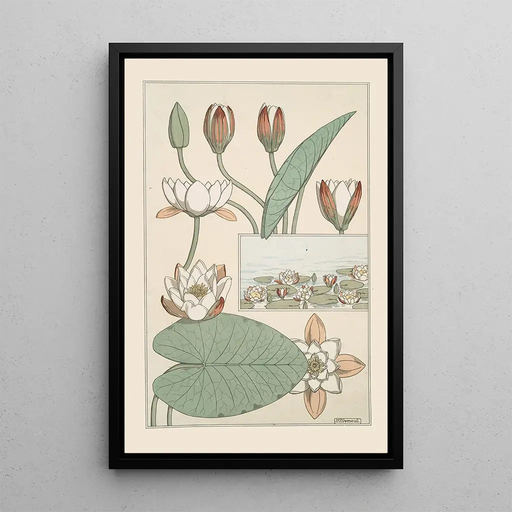 In diesem ikonischen Werk fängt Maurice Pillard Verneuil die ruhige Schönheit der auf dem Wasser treibenden Seerosen ein. Die Pastellfarben verschmelzen zart miteinander und schaffen ein lebendiges Gemälde, das Frieden und Ruhe evoziert. Die impressionistische Technik von Verneuil, gekennzeichnet durch leichte, luftige Pinselstriche, vermittelt ein Gefühl von Bewegung und Leichtigkeit, als würden die Blumen sanft im Wind tanzen. Diese Komposition lädt zur Betrachtung ein und versetzt den Betrachter in eine Welt voller Sanftheit und Harmonie.