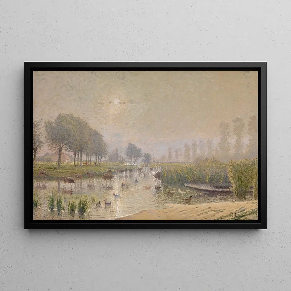 Adrien Joseph Heymans, geboren 1842, ist ein belgischer Maler, der für seine realistischen Landschaften bekannt ist. Beeinflusst vom Impressionismus, konnte er die Schönheit der Natur mit einer einzigartigen Sensibilität einfangen. Seine Werke, oft inspiriert von den Flüssen und Sümpfen seiner Region, zeugen von einer tiefen Verbindung zu seiner Umwelt. Heymans war im zweiten Halbjahr des 19. Jahrhunderts aktiv, einer Zeit, in der die belgische Kunst eine bemerkenswerte Blüte erlebte. Seine Arbeit hat dazu beigetragen, eine Tradition der Landschaftsmalerei zu etablieren, die zeitgenössische Künstler weiterhin inspiriert.