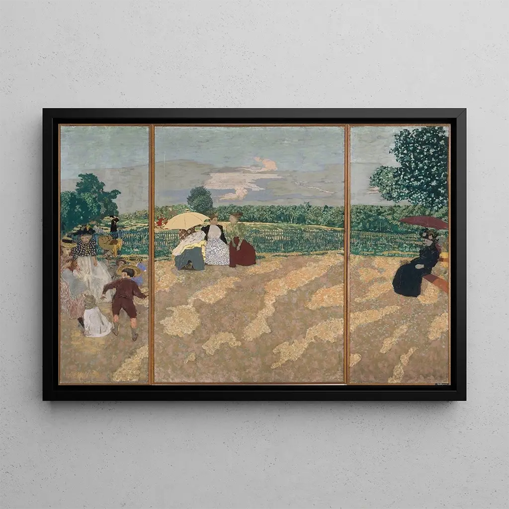 Jardins publics : ein Gemälde des Alltagslebens Jardins publics von Édouard Vuillard ist ein werk, das die schönheit der einfachen momente des lebens einfängt. In diesem gemälde bewegen sich figuren in einem grünen rahmen, umgeben von blumen und licht. Die lebendigen farben und die expressiven pinselstriche vermitteln eine fröhliche und lebendige atmosphäre, in der natur und menschlichkeit harmonisch aufeinandertreffen. Vuillard, ein mitglied der nabi-bewegung, verwendet maltechniken, die eine reiche struktur schaffen und jedes element der komposition lebendig und ansprechend machen. Dieses gemälde ist eine feier des alltagslebens und lädt den zuschauer ein, die schönheit der geteilten momente zu schätzen. Édouard Vuillard : ein meister der nabi-bewegung Édouard Vuillard, aktiv am ende des 19. und zu beginn des 20. jahrhunderts, ist einer der führenden vertreter der nabi-bewegung, die einen persönlicheren und symbolischeren ansatz in der kunst propagierte. beeinflusst von impressionisten und dekorativen künsten, hat Vuillard einen einzigartigen stil entwickelt, der durch intime kompositionen und leuchtende farben gekennzeichnet ist. seine werken, oft fokussiert auf häusliches leben und alltagszenen, offenbaren eine besondere sensibilität für umwelt und menschliche interaktionen. Jardins publics ist ein perfektes beispiel für sein talent, die essenz flüchtiger momente einzufangen. Eine dekorative anschaffung mit vielfältigen vorteilen Die reproduktion von Jardins publics ist ein dekoratives stück, das jeden raum verschönern kann, sei es ein wohnzimmer, büro oder schlafzimmer. Ihre druckqualität und die treue zu den originalnuancen machen sie zu einem zugänglichen und attraktiven kunstwerk. Durch das hinzufügen dieses gemäldes zu Ihrer dekoration bringen Sie einen hauch frische und vitalität in den raum und schaffen eine inspirierende umgebung. Die ästhetische anziehungskraft dieser reproduktion wird ihr interieur bereichern und gleichzeitig ein fenster zur schönheit des alltagslebens durch die augen eines großen meisters öffnen.