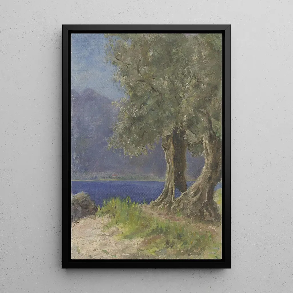 Kunstdruck | Olivenbaumgruppe am Ufer eines italienischen Sees - Fritz Hauck