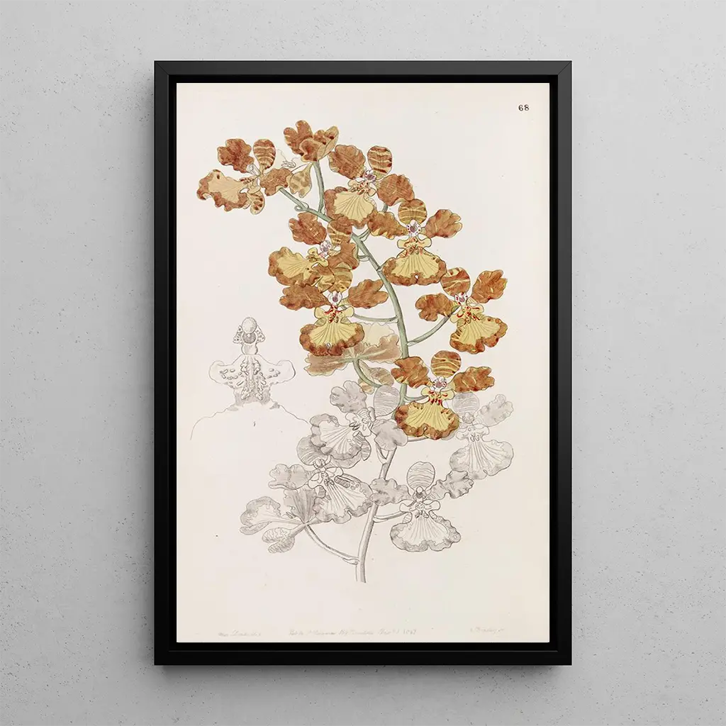 Der oncid à oreilles coupées, ein fesselndes werk von Sydenham Edwards, entführt uns in eine welt voller zartheit und lebendiger farben. Dieser kunstdruck hebt die außergewöhnliche schönheit dieser orchidee hervor, mit fein detaillierten petalen und nuancen von grün und gelb. Die aquarelltechnik, die Edwards verwendet, verleiht diesem leinwandbild eine leichte und luftige atmosphäre, fast ätherisch. Jedes detail, von den nerven der blätter bis zu den konturen der blumen, ist sorgfältig wiedergegeben und lädt den betrachter zu einer aufmerksamen und bewundernswerten betrachtung der natur ein.