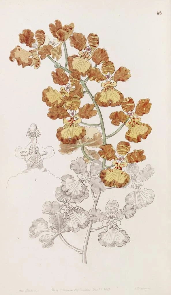 Sydenham Edwards, aktiv im frühen 19. jahrhundert, gilt als einer der großen botanischen illustratoren seiner zeit. Beeinflusst von der romantischen bewegung, konnte er die schönheit der pflanzen mit wissenschaftlicher präzision einfangen und gleichzeitig einen künstlerischen ansatz bewahren. Seine werke, oft veröffentlicht in referenzwerken, spielten eine entscheidende rolle bei der dokumentation der pflanzenarten, insbesondere aus amerika und asien. Der oncid à oreilles coupées ist ein perfektes beispiel für seinen einzigartigen stil, der strenge und empfindsamkeit vereint und die bedeutung der botanischen illustration in wissenschaft und kunst unterstreicht.