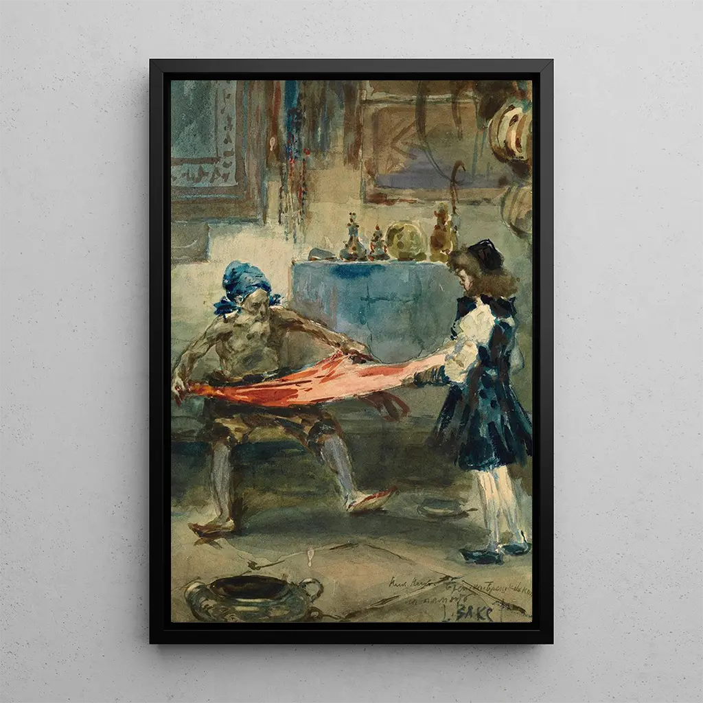Szenen aus dem Orient: Eine Reise ins Herz der orientalischen Geheimnisse Die orientalische Szene, ein faszinierendes Werk von Léon Bakst, entführt den Betrachter in eine Welt voller Geheimnisse und Exotik. Dieses Gemälde, reich an Farben und Mustern, erinnert an verzauberte Landschaften, in denen Figuren in traditionellen Kostümen und architektonische Elemente inspiriert vom Orient verschmelzen. Die warmen, goldenen Töne, kombiniert mit detaillierten Feinheiten, schaffen eine Atmosphäre, die sowohl träumerisch als auch fesselnd ist. Die Technik von Bakst, die Aquarell und Gouache verbindet, verleiht diesem Werk eine bemerkenswerte Tiefe und Helligkeit, die zur Betrachtung und Flucht einlädt. Léon Bakst: Der Künstler der Balletts Russes und des Exotismus Léon Bakst, geboren 1866, gilt als einer der einflussreichsten Künstler seiner Zeit, vor allem durch seine Rolle bei den Balletts Russes. Sein Stil, geprägt vom Exotismus und Symbolismus, hat die Theater- und Bildende Kunst des frühen 20. Jahrhunderts tief beeinflusst. Die Szenen aus dem Orient spiegeln seine Vorliebe für orientalische Themen wider, die sein Interesse an fernen Kulturen und vielfältigen künstlerischen Traditionen zeigen. Bakst schuf Werke, die die Epochen überdauern, indem sie Modernität und kulturelles Erbe verbinden, und Szenen aus dem Orient sind ein leuchtendes Beispiel dafür. Eine dekorative Reproduktion mit vielfältigen Vorzügen Die reproduktion von Szenen aus dem Orient ist eine ideale Wahl, um Ihren Wohnraum zu verschönern. Ob im Wohnzimmer, Büro oder Schlafzimmer – dieses Kunstwerk verleiht Eleganz und Exotik. Die Qualität der kunstdruck garantiert eine Treue zu den Farben und Details des Originalwerks, sodass Sie das Universum von Bakst voll genießen können. Mit ihrer unbestreitbaren ästhetischen Anziehungskraft wird diese Leinwand zum Mittelpunkt, der Bewunderung und Austausch hervorruft. Eine kunstdruck von Szenen aus dem Orient zu wählen, bedeutet, ein Stück Traum und Geschichte ins eigene Zuhause zu holen und gleichzeitig die Inneneinrichtung zu bereichern.
