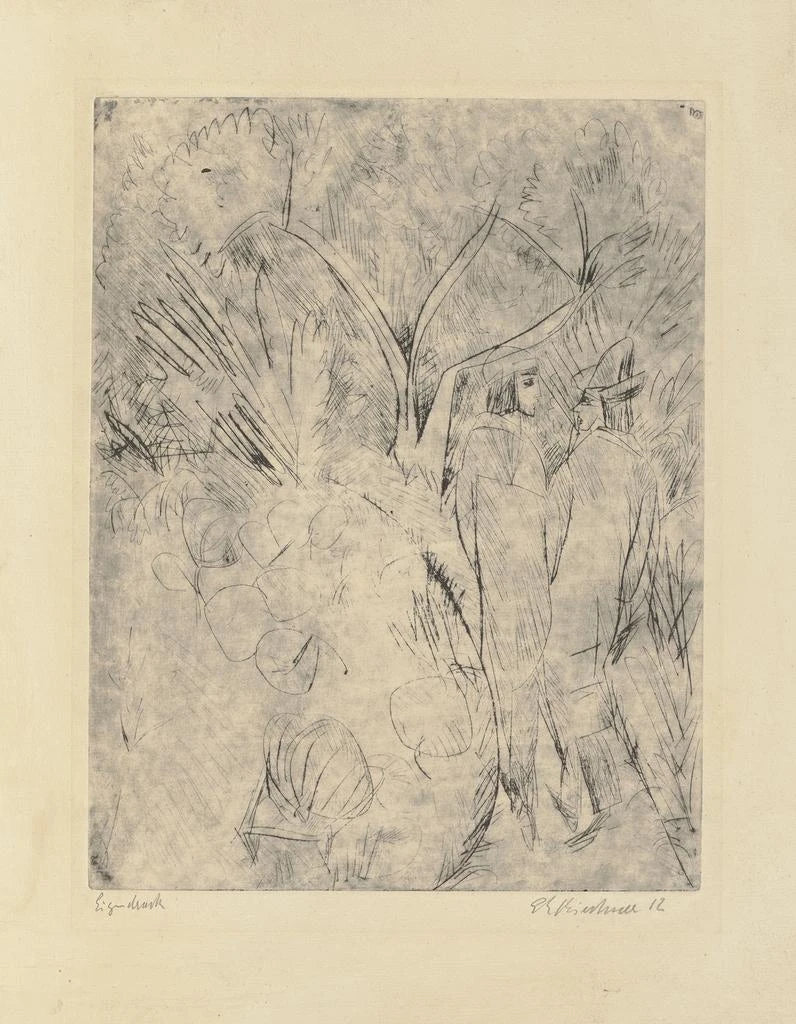 Reproduktion Paar, das im Garten spaziert - Ernst Ludwig Kirchner – Fesselnde Einführung