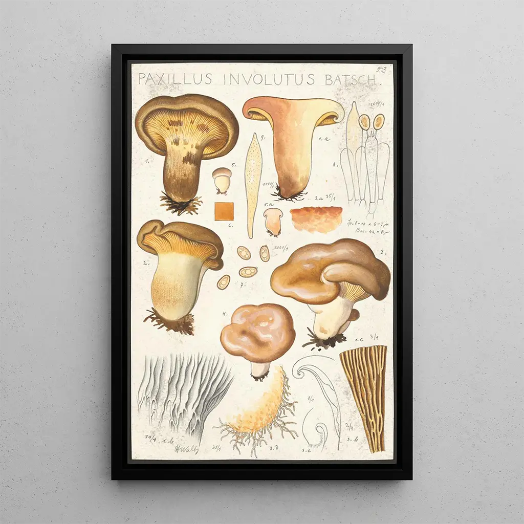 Die reproduction von Paxillus involutus ist eine ideale dekorative Wahl für alle, die ihrem Interieur eine Prise Originalität verleihen möchten. Ob im Wohnzimmer, im Büro oder im Schlafzimmer, dieses Bild zieht die Blicke auf sich und weckt Neugier. Die Druckqualität und die Treue zu den Originalfarben ermöglichen es, das Werk von Baldung voll zu genießen und gleichzeitig eine künstlerische Dimension in Ihren Raum zu bringen. Mit seinem ästhetischen Reiz und seiner Botschaft über die Schönheit der Natur integriert sich dieses Leinwandbild harmonisch in verschiedene Einrichtungsstile und macht jeden Raum zu einem Ort der Betrachtung und des Entkommens.