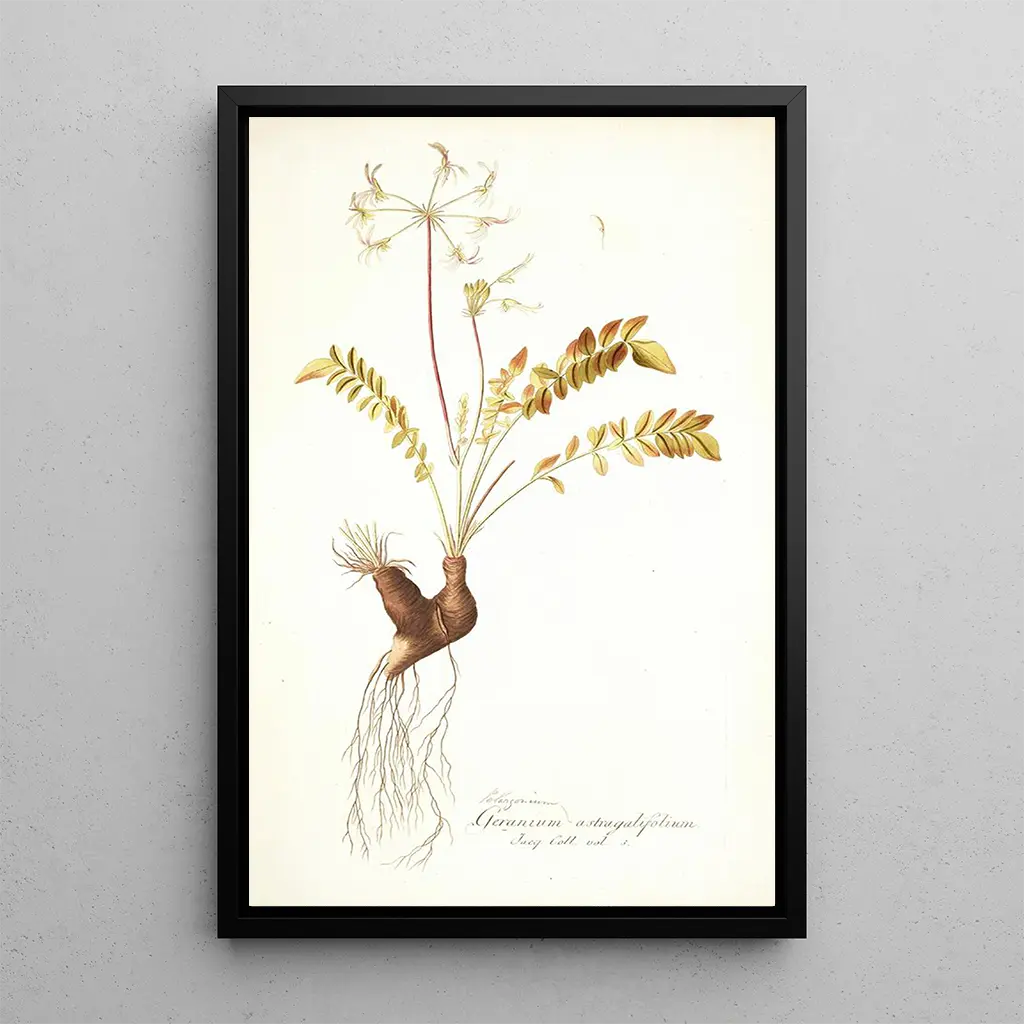 Nikolaus Joseph Freiherr von Jacquin, Botaniker und Künstler des 18. Jahrhunderts, spielte eine entscheidende Rolle beim Aufstieg der botanischen Illustration. Aus Wien ausgebildet, wurde er von den wissenschaftlichen Entdeckungen seiner Zeit und den Entdeckungsreisen beeinflusst, die das Wissen über die weltweite Flora erweiterten. Seine Werke, darunter Pelargonium astragalifolium, zeugen von einem Stil, der wissenschaftliche Präzision und künstlerische Sensibilität vereint. Als Mitglied der Akademie der Wissenschaften trug Jacquin zur Klassifikation der Pflanzen bei und feierte gleichzeitig ihre Schönheit durch seine Kunst, was einen bedeutenden Meilenstein in der Geschichte der Botanik und der Kunst darstellt.