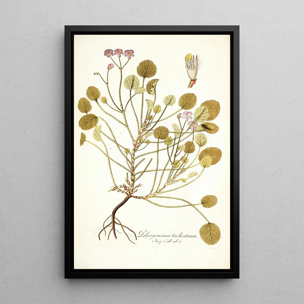 Der kunstdruck von Pelargonium trichostemon ist ein ideales Dekorationsstück, um Ihrem Zuhause einen Hauch von Frische und Natur zu verleihen. Ob im Wohnzimmer, im Büro oder im Schlafzimmer, dieses Bild wird die Blicke auf sich ziehen und Gespräche anregen. Die Druckqualität garantiert eine Farbtreue und Detailgenauigkeit des Originalwerks und bietet gleichzeitig eine unbestreitbare ästhetische Anziehungskraft. Mit dieser Leinwand entscheiden Sie sich für eine Dekoration, die Eleganz und Gelassenheit vereint und Ihren Wohnraum mit einer zeitlosen floralen Note bereichert.
