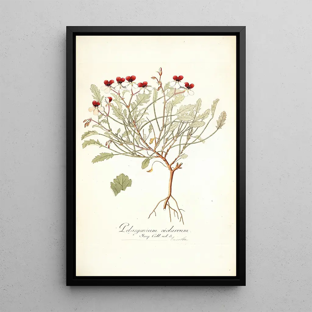 Der kunstdruck von Pelargonium violareum ist eine ideale Wahl, um Ihr Zuhause zu verschönern, sei es im Wohnzimmer, im Büro oder im Schlafzimmer. Seine Druckqualität und die Treue zu den Originalfarben machen ihn zu einem hochwertigen Dekorationsstück. Dieses Gemälde bringt einen Hauch von Natur und Ruhe in Ihren Raum und weckt gleichzeitig die Bewunderung Ihrer Besucher. Mit seinem unbestreitbaren ästhetischen Reiz ist diese Leinwand nicht nur eine dekorative Ergänzung, sondern auch eine Einladung, die Schönheit der Pflanzen zu schätzen und die Kreativität der botanischen Kunst zu feiern.