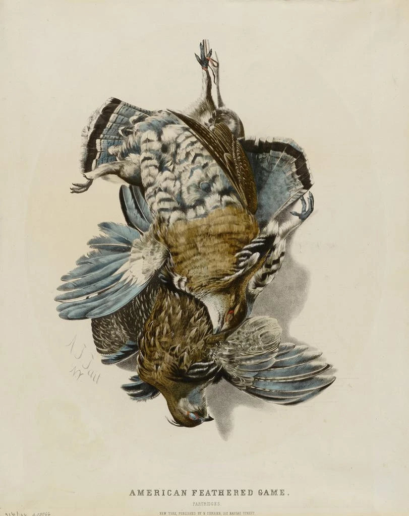 Amerika-Pfauenhuhn - Nathaniel Currier Source: Perdrix à plumes d'Amérique - Nathaniel Currier