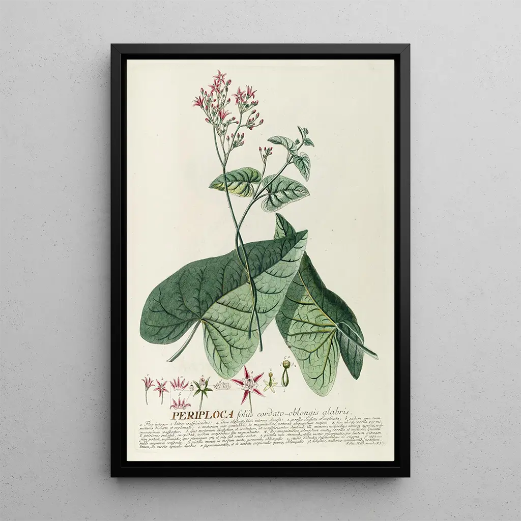 Periploca : eine Feier der botanischen Schönheit Die kunstdrucke von Periploca von Georg Dionysius Ehret sind eine wahre Feier der botanischen Schönheit. Dieses Werk hebt eine zarte Komposition hervor, bei der sich organische Formen anmutig vermischen. Die sanften Farben und die minutiosen Details der Blätter und Blumen schaffen eine Atmosphäre, die sowohl beruhigend als auch inspirierend wirkt. Die von Ehret verwendete Gravurtechnik ermöglicht es, jedes Element mit unglaublicher Präzision wiederzugeben und bietet eine vollständige Eintauchen in die pflanzliche Welt. Dieses Bild lädt zur Betrachtung und zum Staunen über die Vielfalt der Natur ein. Georg Dionysius Ehret : ein Meister der botanischen Kunst Georg Dionysius Ehret gilt als einer der Meister der botanischen Kunst des 18. Jahrhunderts. Ursprünglich aus Deutschland stammend, vereinte er sein künstlerisches Talent mit einer Leidenschaft für die Botanik, beeinflusst von den wissenschaftlichen Fortschritten seiner Zeit. Seine Werke, oft für wissenschaftliche Publikationen geschaffen, zeugen von seiner Liebe zum Detail und seiner Fähigkeit, das Wesen der Pflanzen einzufangen. Ehret arbeitete mit zahlreichen Botanikern zusammen, was ihm ermöglichte, sein Repertoire zu erweitern und eine Referenz im Bereich der botanischen Illustration zu werden. Sein barocker Stil, geprägt von dynamischen Kompositionen und leuchtenden Farben, hat einen unauslöschlichen Eindruck in der Kunstgeschichte hinterlassen. Eine dekorative Anschaffung mit vielfältigen Vorteilen Der kunstdruck des Gemäldes Periploca ist ein dekoratives Stück, das Ihrem Interieur einen Hauch von Eleganz verleiht. Ob im Wohnzimmer, im Büro oder im Schlafzimmer, dieses Bild wird die Blicke auf sich ziehen und Bewunderung hervorrufen. Die Druckqualität garantiert eine Treue zu den ursprünglichen Details, sodass jede Nuance und jeder Strich des Werks geschätzt werden kann. Mit diesem kunstdruck entscheiden Sie sich für ein dekoratives Element, das die Schönheit der natürlichen Welt widerspiegelt und Ihre Umgebung auf harmonische und raffinierte Weise bereichert.