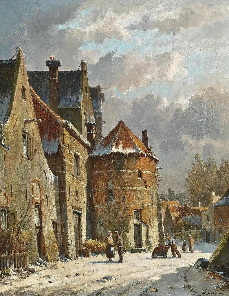 Adrianus Eversen, aktiv im 19. Jahrhundert, ist bekannt für seine Fähigkeit, Szenen des täglichen Lebens mit einer zarten und präzisen Darstellung zu verewigen, die ihm eigen ist. In der künstlerischen Landschaft der Niederlande ausgebildet, wurde er von den holländischen Meistern der Vergangenheit beeinflusst, integrierte jedoch auch zeitgenössische Elemente seiner Epoche. Seine Faszination für Licht und Atmosphäre spiegelt sich in seinem Gesamtwerk wider, doch gerade in seinen winterlichen Szenen erreicht diese Sensibilität ihren Höhepunkt. Eversen hat es verstanden, nicht nur die niederländische Landschaft, sondern auch das Wesen des Lebens, das sich dort abspielt, einzufangen, wodurch seine Gemälde zeitlos sind. Sein Einfluss ist noch heute spürbar und inspiriert zahlreiche Künstler, die Schönheit der Einfachheit und die Tiefe menschlicher Interaktionen in alltäglichen Umgebungen zu erforschen.