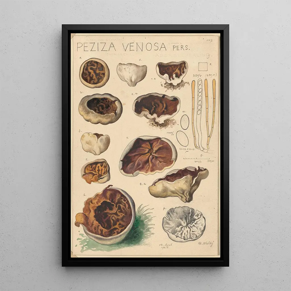 Der kunstdruck von Peziza venosa ist ein ideales Dekorationsstück für alle, die ihrem Zuhause eine originelle Note verleihen möchten. Ob im Wohnzimmer, im Büro oder im Schlafzimmer, dieses Bild zieht den Blick auf sich und weckt Interesse. Die Druckqualität garantiert eine außergewöhnliche Detailtreue an das Originalwerk und verleiht Ihrem Raum eine künstlerische Dimension. Mit diesem kunstdruck entscheiden Sie sich für eine Dekoration, die Ästhetik und Natur verbindet und so eine harmonische und inspirierende Atmosphäre schafft.