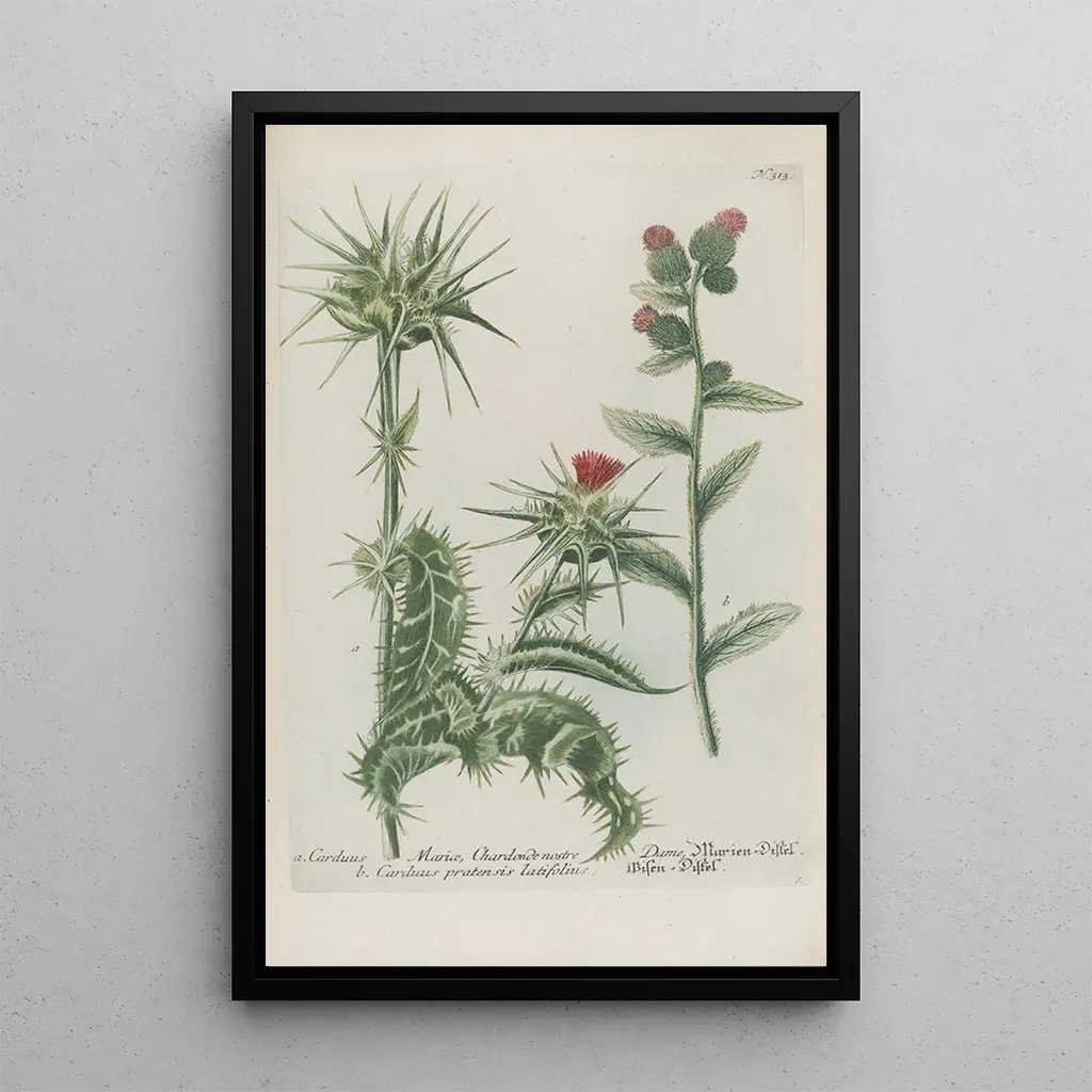 Die kunstdrucke von Phytanthoza iconographia Pl036 entführen den Betrachter in eine faszinierende botanische Welt. Dieses Werk, reich an Details, zeigt eine Vielzahl von Pflanzen mit unterschiedlichen Formen und leuchtenden Farben. Die Nuancen von Blau, Gelb und Grün verschmelzen harmonisch und schaffen eine Komposition, die sowohl dynamisch als auch beruhigend wirkt. Die Radiertechnik von Johann Wilhelm Weinmann ermöglicht es, jede Textur und jeden Schatten mit beeindruckender Präzision wiederzugeben und so ein immersives visuelles Erlebnis zu bieten. Dieses Bild lädt zur Betrachtung ein und offenbart die Schönheit und Komplexität der Pflanzenwelt.