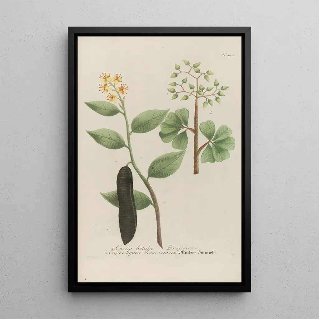 Die kunstdruck von Phytanthoza iconographia Pl064 entführt uns in eine reiche und farbenfrohe botanische Welt. Johann Wilhelm Weinmann fängt durch dieses Werk die Schönheit der Pflanzen mit bemerkenswerter Präzision ein. Die lebendigen Farbtöne und die detaillierten Darstellungen von Blättern und Blüten vermitteln eine Atmosphäre von Gelassenheit und Kontemplation. Die Gravurtechnik, kombiniert mit Aquarell, erweckt jedes Element zum Leben und verwandelt diese Leinwand in eine wahre Ode an die Natur. Das Werk lädt den Betrachter ein, die pflanzliche Vielfalt zu erkunden und sich an der Komplexität der Formen und Farben zu erfreuen.