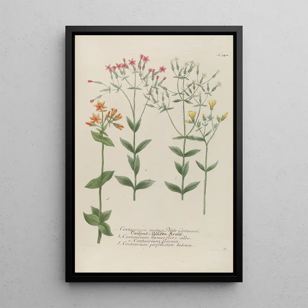 Die reproduction von Phytanthoza iconographia Pl071 entführt uns in einen üppigen Garten, in dem jede Pflanze mit bemerkenswerter Präzision hervorgehoben wird. Die zarten Nuancen der Blumen, verbunden mit subtil nuancierten Hintergründen, schaffen eine beruhigende und harmonische Atmosphäre. Die Gravurtechnik von Johann Wilhelm Weinmann ermöglicht es, die Texturen und Formen der Pflanzen so fein wiederzugeben, dass man fast ihren Duft riechen könnte. Dieses Gemälde ist eine wahre Einladung, die Vielfalt der Flora zu erkunden und gleichzeitig die Schönheit der Natur zu feiern.