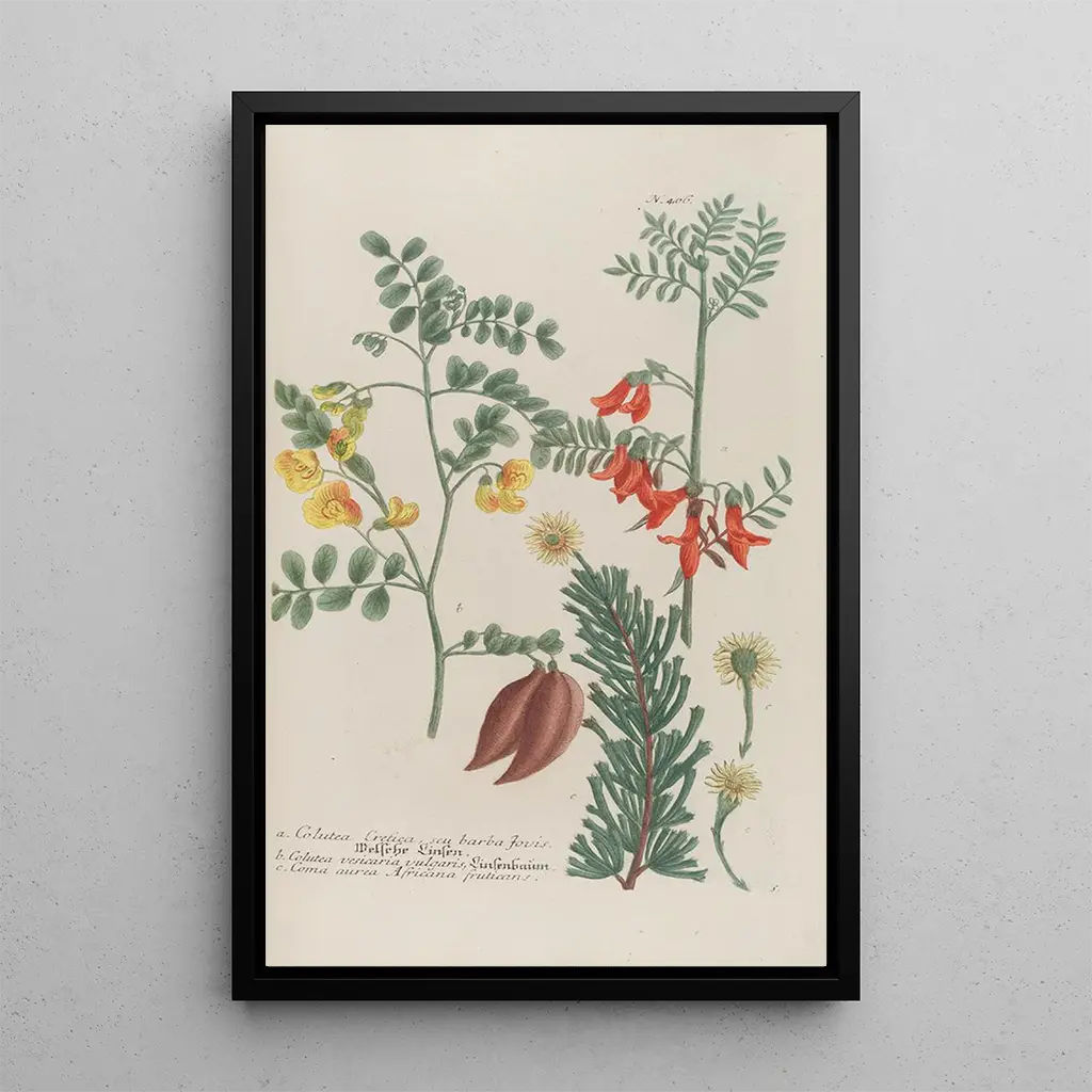Die kunstdruck von Phytanthoza iconographia Pl129 entführt uns in einen üppigen Garten, in dem jede Pflanze eine Geschichte zu erzählen scheint. Mit einer reichen und vielfältigen Farbpalette hebt dieses Werk die Vielfalt der botanischen Arten hervor. Die lebendigen Nuancen von Grün, Gelb und Violett verschmelzen harmonisch und schaffen eine visuell fesselnde Komposition. Die Gravurtechnik, präzise und filigran, ermöglicht es, die feinsten Details einzufangen – von den Nerven der Blätter bis zu den Blütenblättern. Dieses Bild lädt zur Betrachtung und zum Staunen ein und feiert die Schönheit der Natur in ihrer ganzen Pracht.