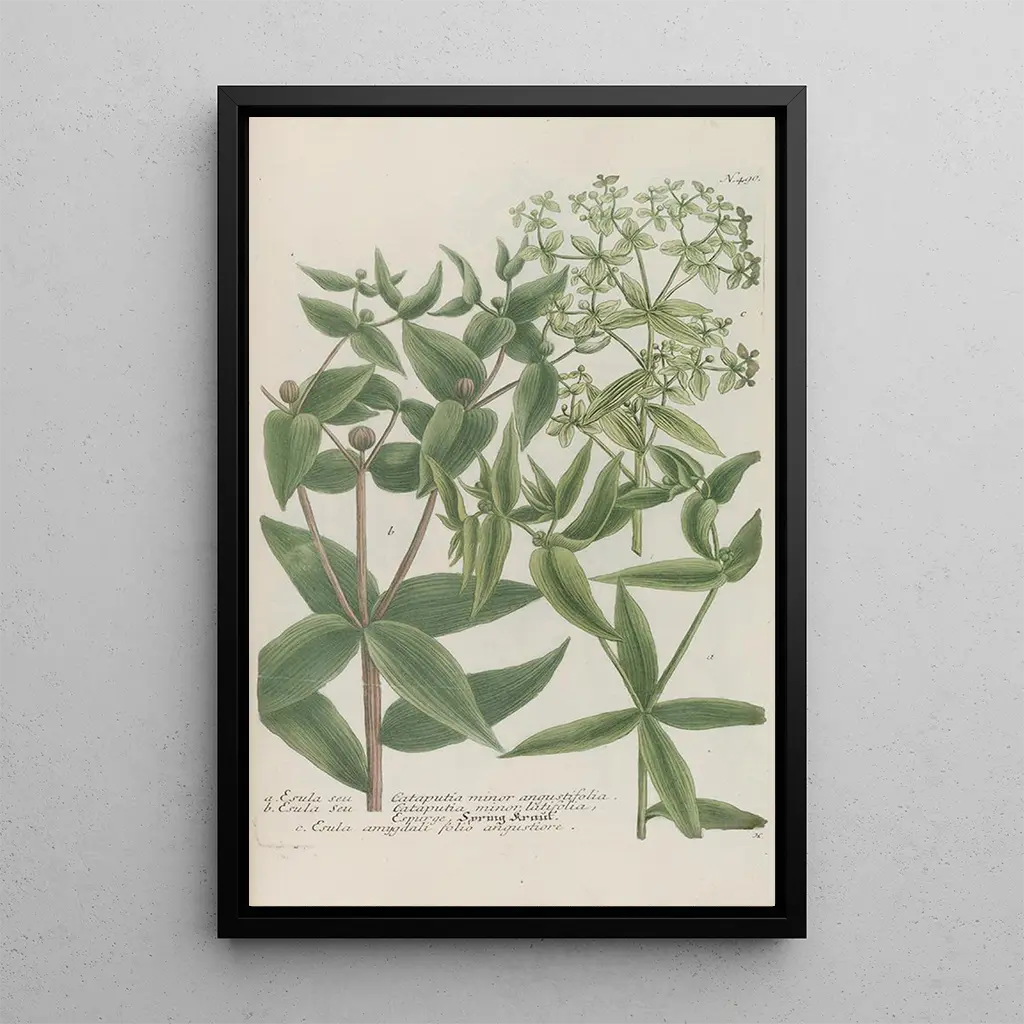 Die kunstdrucke von Phytanthoza iconographia Pl213 entführen uns in eine Welt, in der jede Pflanze mit außergewöhnlicher Sorgfalt gefeiert wird. Die leuchtenden Farbtöne und die zarten Formen der dargestellten Pflanzen schaffen eine lebendige und dynamische Atmosphäre. Dieses Werk lädt durch seine detaillierte Herangehensweise zu einer aufmerksamen Betrachtung ein und offenbart die Komplexität und Schönheit der Flora. Die Radiertechnik von Johann Wilhelm Weinmann ermöglicht es, das Wesen der Pflanzen einzufangen, und macht dieses Bild zu einem wahren botanischen Kunstwerk, das die Sinne weckt und die Fantasie anregt.