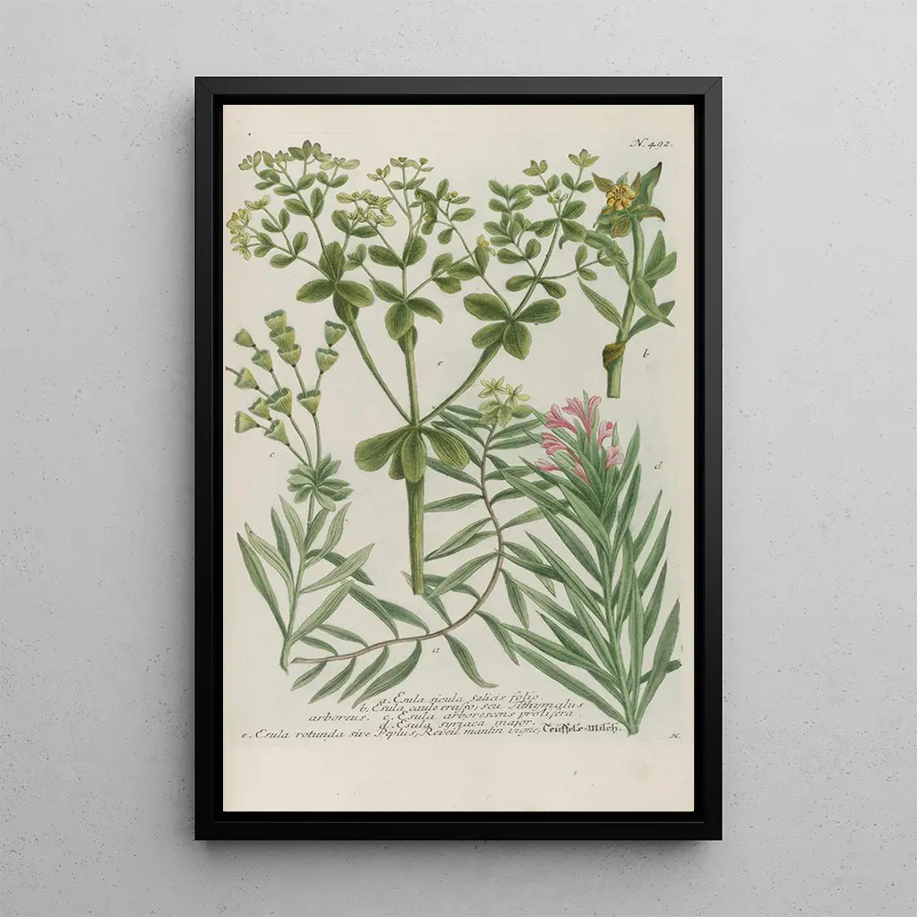 Phytanthoza iconographia Pl215 : eine faszinierende botanische Entdeckung Die kunstdruck der Arbeit Phytanthoza iconographia Pl215 entführt uns in eine Welt, in der die Flora mit bemerkenswerter Präzision hervorgehoben wird. Die Illustrationen, mit verblüffender Klarheit, zeigen eine Vielzahl von Pflanzen in unterschiedlichen Formen und Farben, die eine lebendige und dynamische Atmosphäre schaffen. Die Radiertechnik, bereichert durch Aquarelltöne, verleiht jeder Pflanze eine fast tastbare Dimension und lädt zur Erkundung ein. Das Werk beschreibt nicht nur die Schönheit der Natur, sondern auch die Bedeutung der botanischen Dokumentation in einer Zeit, in der Wissenschaft und Kunst sich vereinten. Johann Wilhelm Weinmann : ein Meister der botanischen kunst Johann Wilhelm Weinmann, aktiv im 18. Jahrhundert, ist eine ikonische Figur der botanischen illustration. Sein bedeutendstes Werk, Phytanthoza iconographia, ist das Ergebnis einer Leidenschaft für die Botanik und einer Wissenssuche. Beeinflusst von Entdeckungsreisen und wissenschaftlichen Entdeckungen seiner Zeit, konnte Weinmann die Essenz exotischer Pflanzen mit beeindruckender Realitätsnähe einfangen. Sein Erbe besteht fort, denn seine werken inspirieren weiterhin Botaniker und Künstler und zeugen von der Bedeutung der kunst im Verständnis der natürlichen Welt. Eine dekorative anschaffung mit vielfältigen vorteilen Der kunstdruck von Phytanthoza iconographia Pl215 ist eine wertvolle ergänzung für jede kunstsammlung oder Ihre inneneinrichtung. Ob im wohnzimmer, büro oder schlafzimmer, dieses leinwandbild bringt einen Hauch von Eleganz und Ruhe. Die Druckqualität garantiert eine detailgetreue Wiedergabe des Originals, verbunden mit einer raffinierten Ästhetik. Mit der Wahl dieses bildes laden Sie die Schönheit der Natur in Ihren lebensraum ein und schaffen eine inspirierende und beruhigende umgebung. Dieses werk ist nicht nur ein dekoratives element, sondern auch eine feier der biodiversität, die Ihren innenraum bereichert.