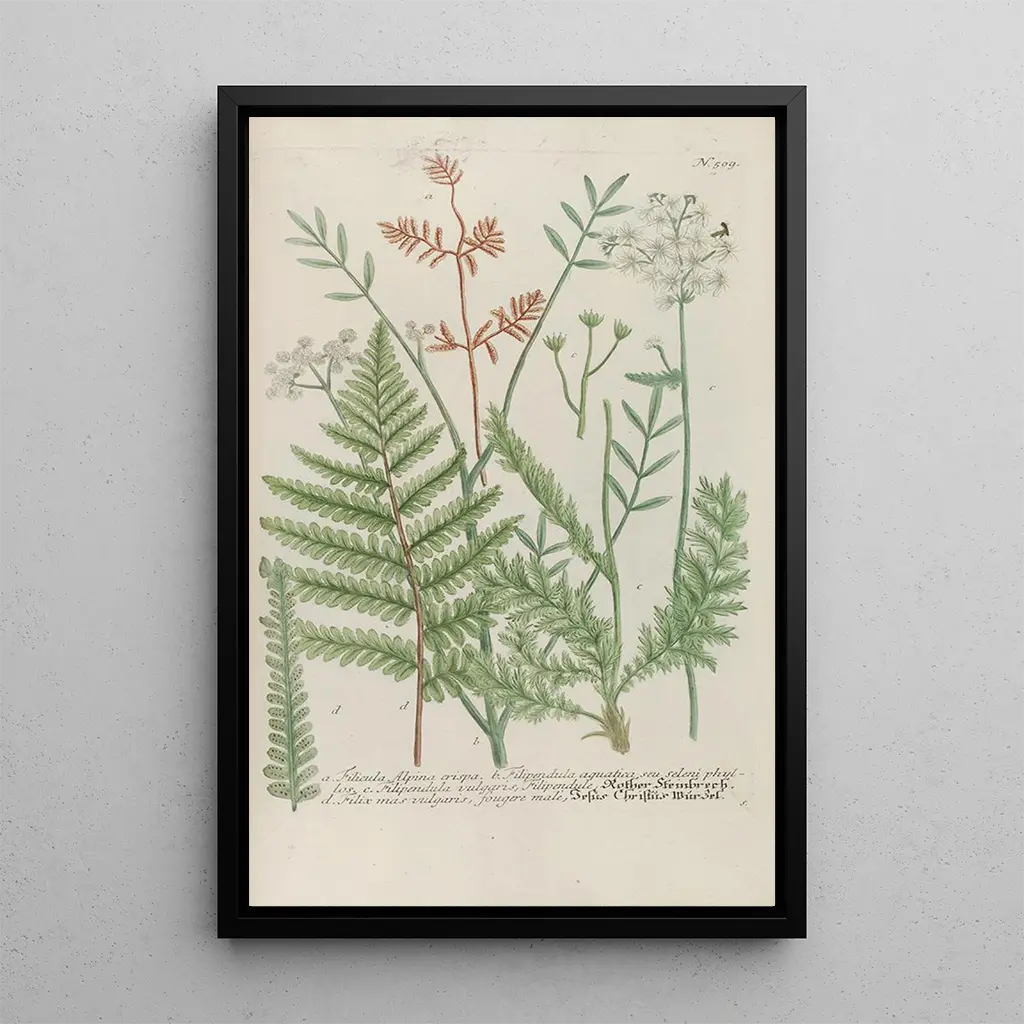 Die reproduction von Phytanthoza iconographia Pl232 lädt uns ein, die Vielfalt und Komplexität der Pflanzenwelt zu bewundern. Mit ihren leuchtenden Farben und ihren detaillierten Feinheiten vermittelt dieses Werk von Johann Wilhelm Weinmann ein Gefühl von Lebendigkeit und Bewegung. Die Nuancen von Grün, Violett und Orange verschmelzen harmonisch und schaffen eine lebendige und fröhliche Atmosphäre. Jedes Element ist sorgfältig wiedergegeben, was die Expertise des Künstlers in der Beobachtung und Darstellung von Pflanzen widerspiegelt. Dieses Bild ist eine wahre Feier der Natur und regt zur Kontemplation und zum Staunen an.