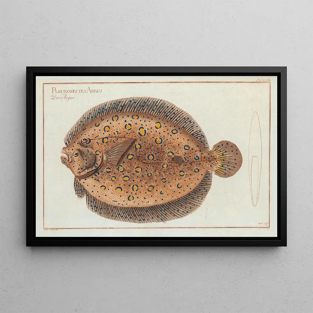Der kunstdruck von Pleuronectes argus La plie d'Argus ist ein dekoratives Stück, das Natur- und Meeresliebhaber begeistern wird. Ideal für ein Büro, ein Badezimmer oder eine Küche, bringt dieses Leinwandbild einen Hauch von Eleganz und Frische in Ihr Zuhause. Die Druckqualität garantiert eine detailgetreue Wiedergabe des Originalwerks, verbunden mit einem unbestreitbaren ästhetischen Reiz. Mit diesem kunstdruck fügen Sie Ihrer Dekoration eine künstlerische und wissenschaftliche Dimension hinzu und feiern gleichzeitig die Schönheit der Meereskreaturen.