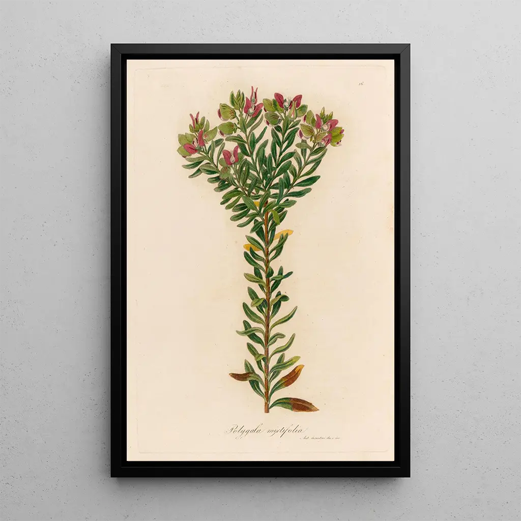 Der kauf eines kunstdrucks von Polygala myrtifolia bedeutet, ein dekoratives Stück zu wählen, das Frische und Vitalität in Ihr Zuhause bringt. Ob im Wohnzimmer, im Büro oder im Schlafzimmer, dieses Bild fügt sich harmonisch in verschiedene Einrichtungsstile ein. Seine Druckqualität und die Treue zu den Originalfarben garantieren eine unbestreitbare ästhetische Anziehungskraft. Durch das Hinzufügen dieses Gemäldes zu Ihrer Sammlung schenken Sie Ihrem Raum eine Einladung zur Betrachtung und Flucht, während Sie die Schönheit der Natur feiern.