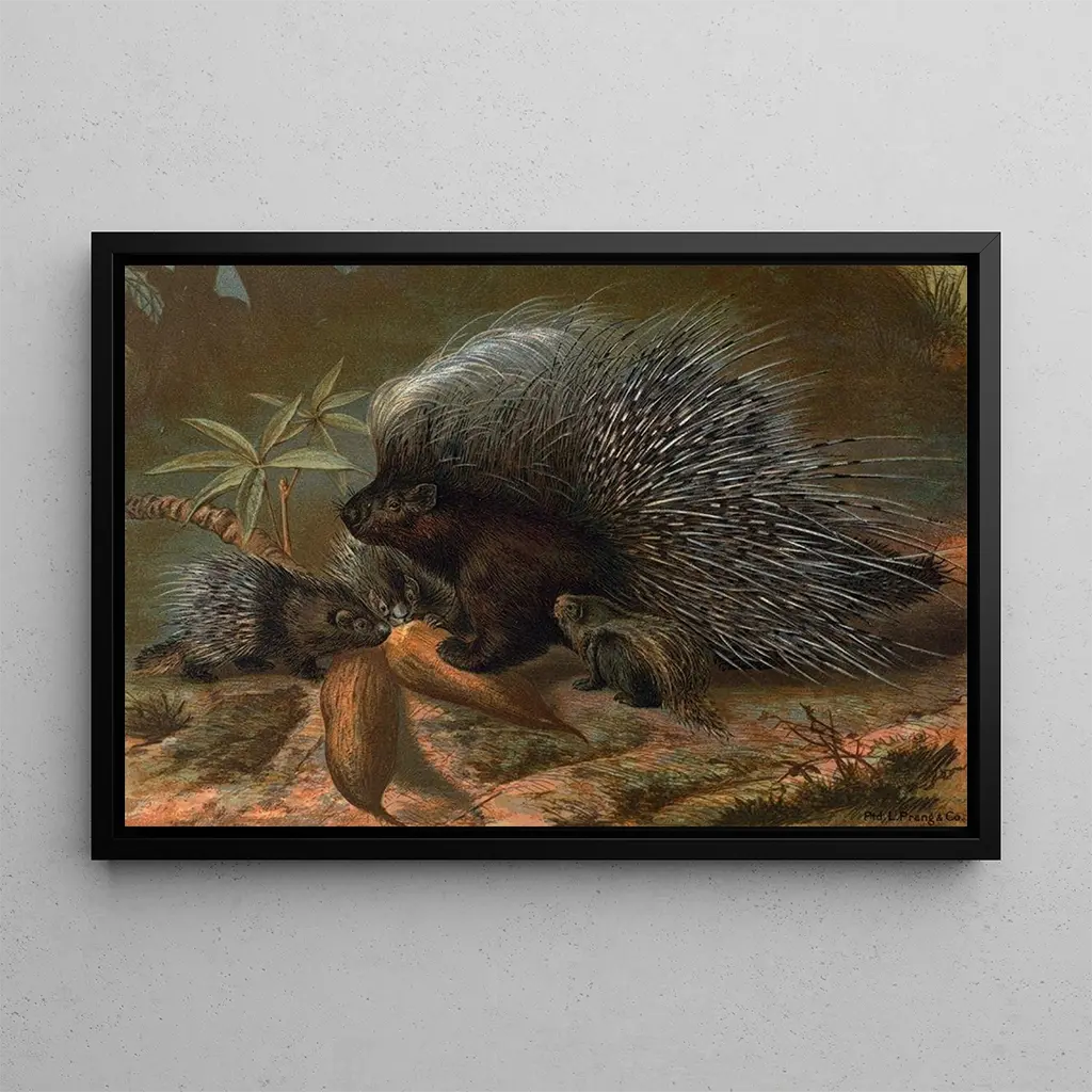 Porc-épic : eine Kuriosität der Natur enthüllt In dieser faszinierenden Darstellung bietet John George Wood einen fesselnden Einblick in den porc-épic, ein oft unbekanntes Tier. Das Gemälde, reich an Details, hebt die charakteristischen Stacheln dieses Tieres hervor und betont gleichzeitig seine neugierige und aufmerksame Haltung. Die erdigen Farben und die Nuancen von Braun und Grau verleihen dem Werk eine Atmosphäre, die sowohl wild als auch faszinierend ist. Die Technik von Wood, die Realismus mit einem Hauch Expressionismus verbindet, ermöglicht es, die einzigartige Persönlichkeit dieses Tieres zu spüren. Jeder Stachel scheint eine Geschichte zu erzählen und lädt den Betrachter ein, die natürliche Welt mit einem neuen Blick zu erkunden. John George Wood : ein Naturforscher im Dienste der Kunst John George Wood, aktiv im 19. Jahrhundert, war sowohl ein Künstler als auch ein leidenschaftlicher Naturforscher. Seine Arbeit zeichnet sich durch einen wissenschaftlichen Ansatz bei der Darstellung von Tieren aus, der darauf abzielt, die Öffentlichkeit über Fauna und Flora aufzuklären. Beeinflusst von den Entdeckungen seiner Zeit, verstand es Wood, Kunst und Wissenschaft zu verbinden und Werke zu schaffen, die Neugier und Staunen wecken. Seine Illustrationen, darunter "Porc-épic", sind nicht nur ästhetisch, sondern auch informativ und zeugen von einer Epoche, in der die Beobachtung der Natur essenziell war. Sein Erbe besteht weiter und inspiriert heute Künstler und Naturforscher. Eine dekorative Anschaffung mit vielfältigen Vorzügen Der kunstdruck von "Porc-épic" ist eine originelle und faszinierende Ergänzung Ihrer Innendekoration. Ob im Büro, Spielzimmer oder Wohnzimmer, dieses Bild zieht den Blick auf sich und regt Gespräche an. Die Qualität des kunstdrucks garantiert eine detailgetreue Wiedergabe des Originals und ermöglicht es, die Schönheit und Einzigartigkeit des Tieres zu genießen. Durch die Integration dieses Bildes in Ihren Raum bringen Sie einen Hauch von Exotik und Gelehrsamkeit ein und feiern gleichzeitig die Schönheit der Natur durch die Kunst.