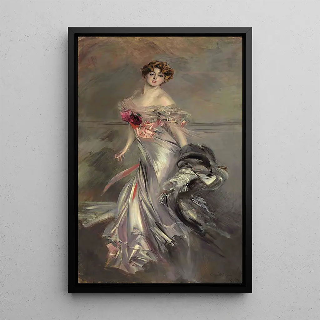 Portrait von Marthe Régnier: eine Hommage an die weibliche Schönheit Das Gemälde "Portrait von Marthe Régnier" von Giovanni Boldini fängt die Essenz der weiblichen Schönheit durch eine dynamische Komposition und lebendige Farben ein. Das Bild zeigt Marthe Régnier in einer eleganten Pose, umhüllt von fließenden Drapierungen, die fast um sie herum zu tanzen scheinen. Die mutigen Pinselstriche und die impressionistische Technik verleihen dem Werk eine lebendige Atmosphäre, in der das Licht eine zentrale Rolle spielt und die zarten Züge des Gesichts der Muse betont. Boldini, Meister des Portraits, gelingt es, nicht nur das Aussehen von Marthe, sondern auch ihren Geist und ihre Persönlichkeit zu verewigen, wodurch eine wahre Einladung zur Betrachtung entsteht. Giovanni Boldini: der Virtuose des Portraits in der Belle Époque Giovanni Boldini, geboren 1842 in Italien, etablierte sich rasch als einer der führenden Portraitmaler der Belle Époque. Beeinflusst vom impressionistischen Bewegung und dem Rokoko-Stil, entwickelte er eine einzigartige Technik, die Eleganz und Modernität verbindet. Seine Portraits, oft von Frauen aus der High Society, offenbaren eine Faszination für Mode und Glamour seiner Zeit. Boldini konnte den Geist seiner Epoche einfangen und wurde so zu einem privilegierten Zeugen des sozialen und künstlerischen Lebens Ende des 19. Jahrhunderts. Sein Werk, zu dem "Portrait von Marthe Régnier" ein emblematisches Beispiel ist, inspiriert und fasziniert weiterhin Kunstliebhaber. Eine dekorative Reproduktion mit vielfältigen Vorzügen Die kunstdruck des "Portrait von Marthe Régnier" ist ein dekoratives Stück, das Ihr Interieur bereichern wird, sei es im Wohnzimmer, Büro oder Schlafzimmer. Die Druckqualität und die Treue zu den Originalfarben garantieren eine außergewöhnliche ästhetische Wirkung und verleihen Ihrer Dekoration eine Note von Raffinesse. Mit diesem Gemälde entscheiden Sie sich für ein Werk, das nicht nur einen Raum verschönert, sondern auch eine Geschichte erzählt – die einer vergangenen Epoche, in der Eleganz und Charme im Mittelpunkt standen. Dieses Bild ist viel mehr als nur eine Dekoration; es ist eine wahre Einladung zur Flucht und Träumerei.