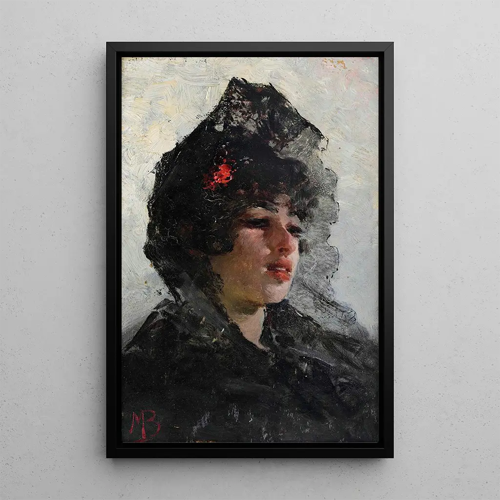 Der Portrait de Jeune Femme von Mosè Bianchi ist ein Kunstwerk, das Anmut und feminine Eleganz verkörpert. Die Komposition hebt das zarte Gesicht der jungen Frau hervor, deren fesselnder Blick eine Geschichte zu erzählen scheint. Die sanften Farben, mit Pastelltönen und Lichtakzenten, schaffen eine träumerische und romantische Atmosphäre. Die Technik von Bianchi, die Präzision und Sensibilität verbindet, ermöglicht es, die Feinheiten der Züge und Ausdrücke einzufangen und das Portrait lebendig und berührend zu gestalten. Dieses Gemälde lädt zu einer tiefen Betrachtung ein und offenbart die zeitlose Schönheit seines Subjekts.