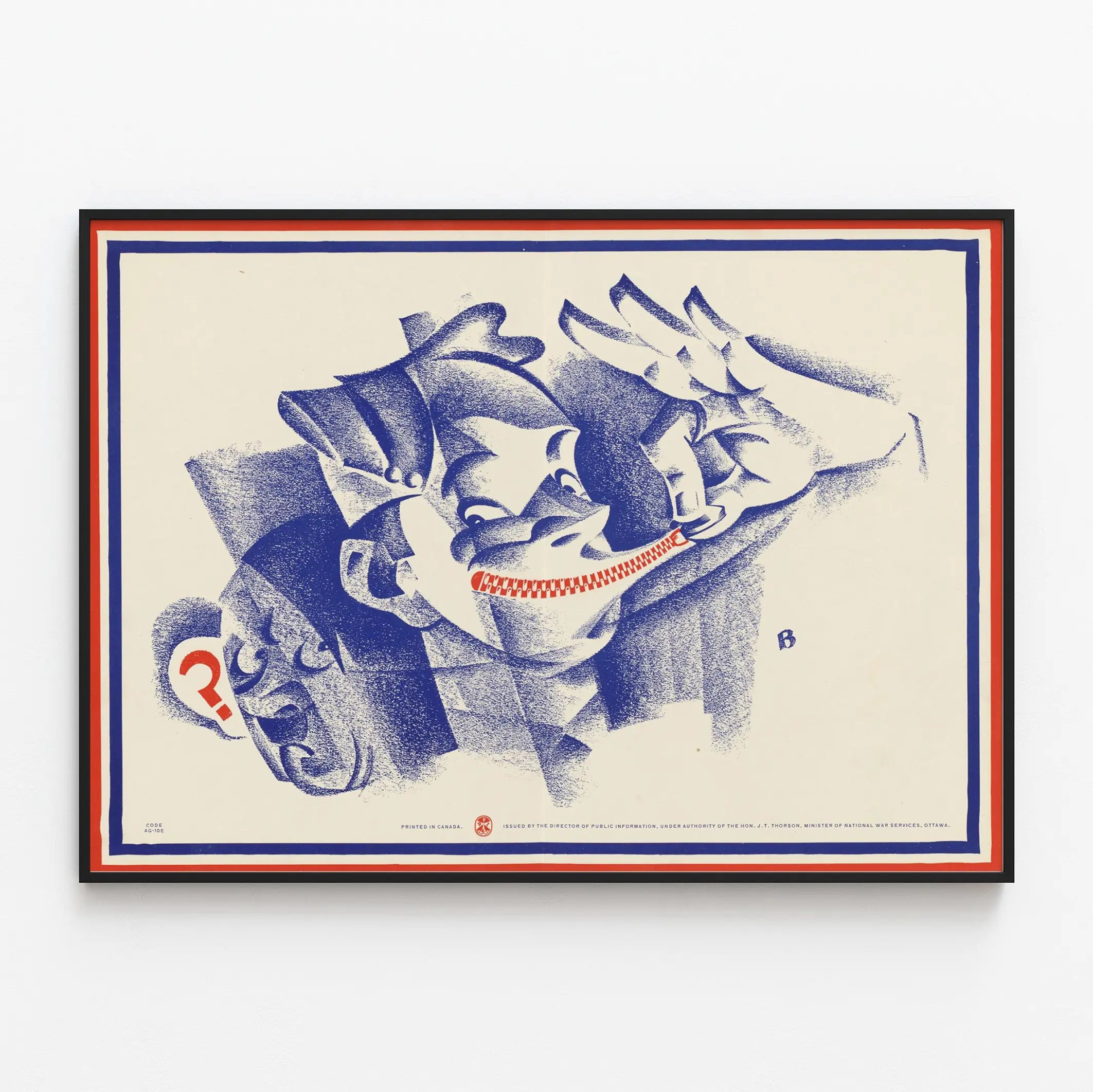 Dieses einzigartige Plakat spielt mit einem auffälligen Kontrast zwischen tiefblauen Tönen und dem leuchtenden Rot, das den Reißverschluss anstelle der Lippen betont. Die Komposition zeigt ein stilisiertes Gesicht mit kantigen, betonten Zügen, das an eine Skulptur oder eine Kohlezeichnung erinnert. Der körnige Textur-Effekt verstärkt den grafischen und rohen Charakter dieser Gestaltung, während die begrenzte Farbauswahl einen starken, zeitgenössischen visuellen Eindruck erzeugt. Diese Wanddekoration, die sich auf den Gesichtsausdruck und die Symbolik des durch den Reißverschluss auferlegten Schweigens konzentriert, präsentiert sich als künstlerisches und modernes Poster, ideal für ein minimalistisches oder künstlerisches Interieur. Der zweifarbige Rahmen in Rot und Blau hebt das Bild hervor und lenkt den Blick auf die wichtigen Details, wodurch die visuelle Botschaft des Werkes verstärkt wird. Das auf hochwertigem Papier gedruckte Format verleiht diesem Bild eine markante Präsenz an der Wand und macht dieses Plakat zu einem zentralen Element jeder Wanddekoration, bei der grafische Kunst eine bedeutende Rolle spielt. Dieses Artem Legrand-Poster wird Kunstliebhaber ansprechen, die dekorative Elemente mit Bedeutung und Nachdenklichkeit schätzen. Es passt perfekt in ein Wohnzimmer, ein Büro oder einen kreativen Raum und verleiht Ihrer Inneneinrichtung einen Hauch von Modernität und eine faszinierende Atmosphäre. Fügen Sie Ihrem Raum ein dekoratives Objekt hinzu, das zum Nachdenken anregt und inspiriert – mit diesem Bild eines faszinierenden Gesichts mit zugenähten Lippen, einem starken visuellen und ästhetischen Symbol.