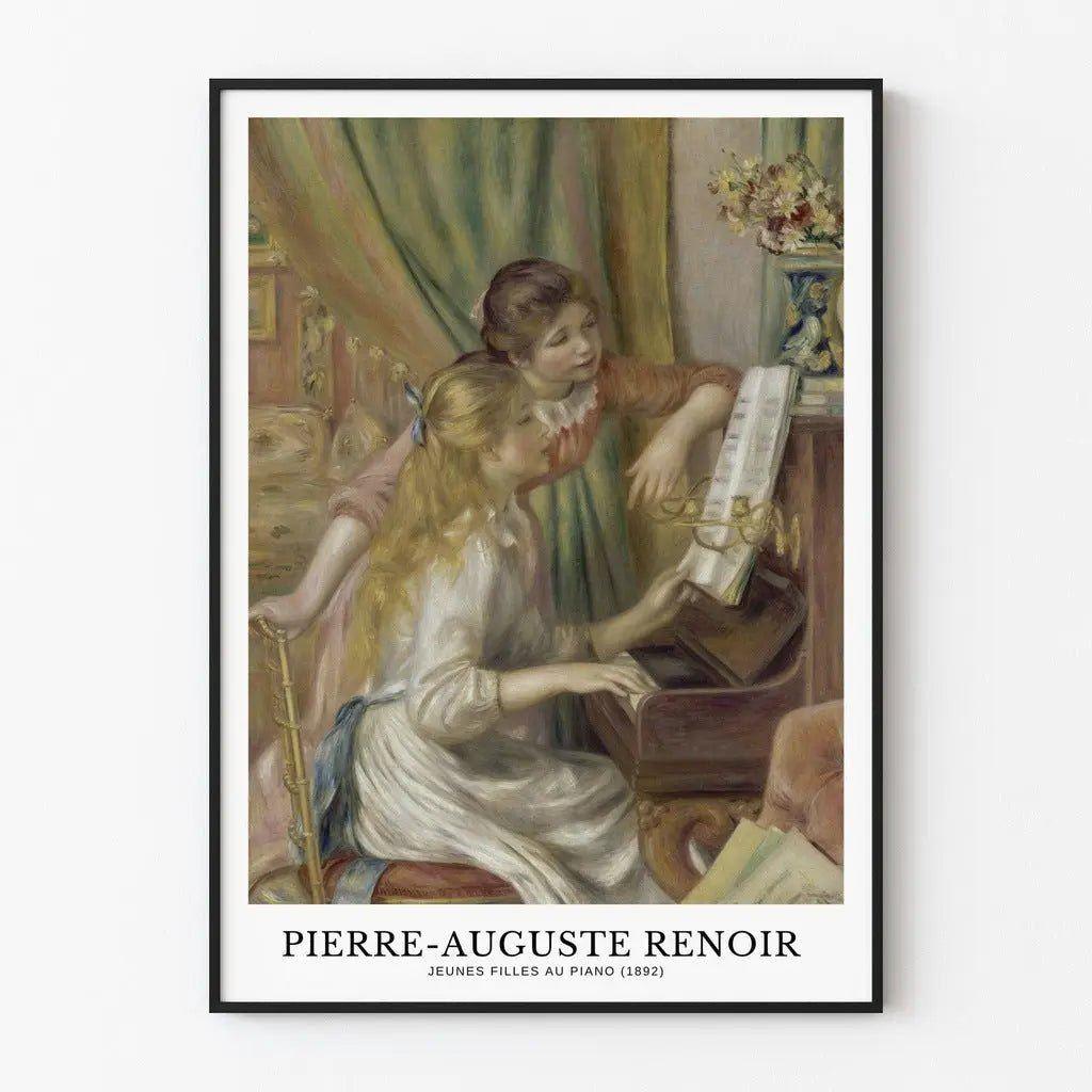Tauchen Sie ein in die bezaubernde Welt des Impressionismus mit diesem wunderschönen Poster, das das emblematische Werk "Junge Mädchen am Klavier" von Auguste Renoir zeigt. Gemalt im Jahr 1892, fängt dieses Meisterwerk der impressionistischen Kunst den magischen Moment ein, in dem zwei junge Mädchen, vertieft in die Musik, einen Moment der Intimität und Verbundenheit am Klavier teilen. Renoirs zarte Pinselstriche und seine unvergleichliche Beherrschung von Licht und Farbe erwecken diese Szene zum Leben und schaffen eine warme und fesselnde Atmosphäre, die Ihre Sinne bei jedem Blick erwecken wird.