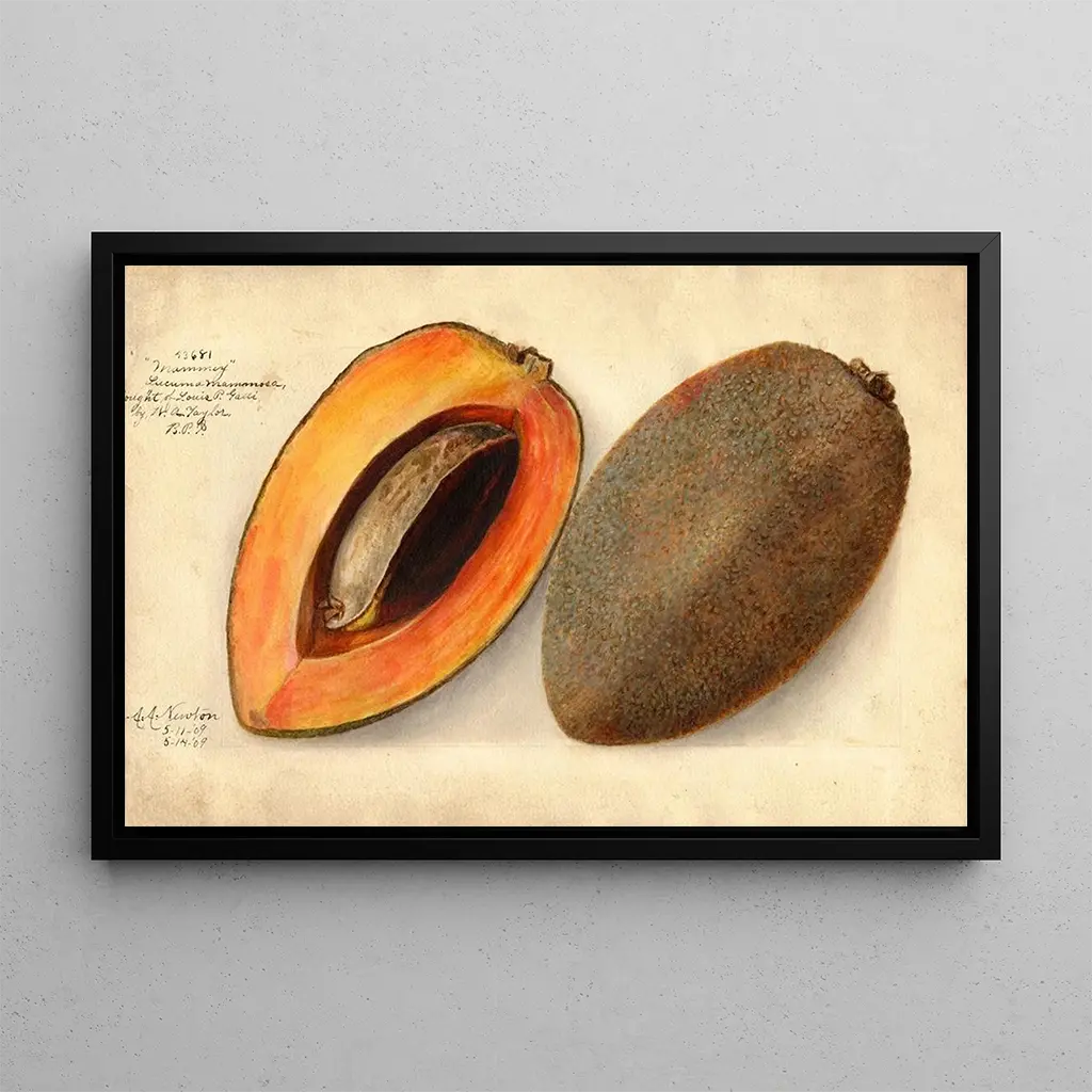 Der kunstdruck von Pouteria campechiana Mammey ist ein ideales Dekorationsstück, um Ihr Zuhause zu verschönern. Ob im Wohnzimmer, im Büro oder im Schlafzimmer, dieses Bild bringt einen Hauch von Exotik und Frische. Die Druckqualität garantiert eine Farbtreue und Detailgenauigkeit des Originalwerks, sodass die ganze Pracht von Newtons Schöpfung bewundert werden kann. Die ästhetische Anziehungskraft dieses Leinwandbildes macht es zur perfekten Wahl für alle, die ihre Dekoration bereichern und gleichzeitig die Schönheit der Natur feiern möchten.