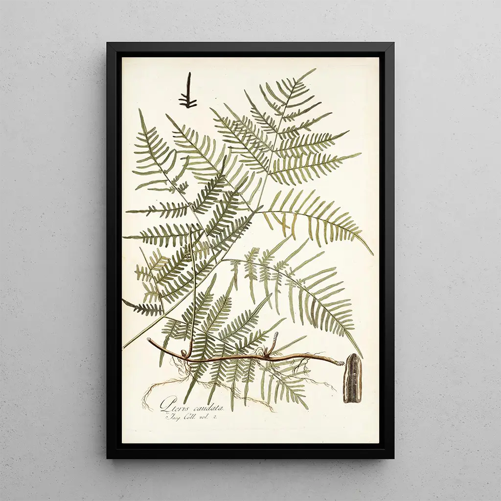 Pteris caudata : ein Tanz aus Grün und Licht Das Bild Pteris caudata, geschaffen von Nikolaus Joseph Freiherr von Jacquin, erinnert an eine üppige Natur, in der die Zartheit der Farnblätter mit dem umgebenden Licht verschmilzt. Die Grüntöne, vom zartesten bis zum tiefsten, schaffen eine visuelle Harmonie, die den Betrachter in eine Welt der Gelassenheit entführt. Die Aquarelltechnik, meisterhaft angewandt, fängt die Transparenz und Leichtigkeit der Blätter ein und offenbart zugleich die Feinheiten von Schatten und Reflexionen. Die Atmosphäre, die dieses Werk ausstrahlt, ist sowohl beruhigend als auch belebend und lädt zu einer aufmerksamen Betrachtung der natürlichen Schönheit ein. Nikolaus Joseph Freiherr von Jacquin : ein Pionier der künstlerischen Botanik Nikolaus Joseph Freiherr von Jacquin, Botaniker und Künstler des 18. Jahrhunderts, verstand es, Wissenschaft und Kunst in seinen Werken zu vereinen. Ausgebildet an der Universität Wien, wurde er von den Strömungen der Aufklärung beeinflusst, die die Beobachtung der Natur förderten. Seine Expeditionen in Amerika und auf den Antillen ermöglichten ihm, eine Vielzahl von Pflanzen zu entdecken, die er anschließend mit bemerkenswerter Präzision darstellte. Jacquin ist bekannt für seine Beiträge zur Botanik, aber auch für seinen einzigartigen künstlerischen Stil, der wissenschaftliche Strenge mit ästhetischer Sensibilität verbindet. Seine Arbeit hat einen nachhaltigen Einfluss auf die Darstellung von Pflanzen in der Kunst. Eine dekorative Anschaffung mit vielfältigen Vorzügen Die reproduction von Pteris caudata ist eine ideale Wahl, um verschiedene Wohnräume zu verschönern, sei es im Wohnzimmer, im Büro oder im Schlafzimmer. Seine beruhigende Farbpalette und sein zartes Muster bringen einen Hauch von Natur und Frische in Ihre Inneneinrichtung. Die Qualität der reproduction garantiert eine Treue zur Originalarbeit, sodass alle Details und die Schönheit dieses Leinwandbildes genossen werden können. Mit seinem unbestreitbaren ästhetischen Reiz fügt sich dieses Werk harmonisch in jeden Einrichtungsstil ein und verleiht Ihrer Umgebung eine Note von Raffinesse und Gelassenheit.