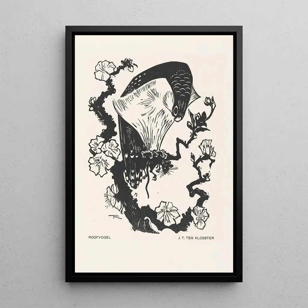 Rapace : eine Hommage an die Majestät des Himmels Der Kunstdruck Rapace von Johannes Frederik Engelbert ten Klooster evoziert die Kraft und Anmut der Raubvögel. Dieses beeindruckende Werk, mit seinen Nuancen von Blau und Braun, fängt die elegante Bewegung des Raubvogels im Flug ein. Die detaillierten Federn und der entschlossene Ausdruck des Vogels schaffen eine Atmosphäre, die sowohl dynamisch als auch kontemplativ ist. Die Technik des Künstlers, die Realismus und impressionistische Akzente verbindet, ermöglicht es, die Energie der Natur und die wilde Schönheit, die sie umgibt, zu spüren. Jeder Blick auf dieses Gemälde offenbart eine neue Facette der vogelartigen Majestät. Johannes Frederik Engelbert ten Klooster: ein Entdecker der Natur Johannes Frederik Engelbert ten Klooster ist ein Künstler, dessen Arbeit sich auf die Darstellung von Fauna und Flora konzentriert, insbesondere in der ersten Hälfte des 20. Jahrhunderts. Seine Leidenschaft für die Natur und sein Wunsch, ihre Schönheit einzufangen, führten ihn dazu, verschiedene Umgebungen zu erkunden, von dichten Wäldern bis zu offenen Himmeln. Beeinflusst von zeitgenössischen Kunstbewegungen, hat er einen einzigartigen Stil entwickelt, der Präzision und Ausdruckskraft vereint. Sein Werk, insbesondere Rapace, zeugt von seinem Engagement, die Öffentlichkeit für die Schönheit und Zerbrechlichkeit der Natur zu sensibilisieren. Eine dekorative Anschaffung mit vielfältigen Vorteilen Der Kunstdruck des Gemäldes Rapace ist eine ideale Dekorationswahl für diejenigen, die ihrem Zuhause einen Hauch von Eleganz und Natur verleihen möchten. Ob im Wohnzimmer, im Büro oder im Schlafzimmer, diese Leinwand zieht den Blick auf sich und weckt Bewunderung. Die Druckqualität garantiert eine außergewöhnliche Treue zu den Details des Originalwerks, sodass man seine Schönheit voll genießen kann. Durch die Integration dieses Kunstwerks in Ihren Raum schaffen Sie eine inspirierende und beruhigende Atmosphäre, während Sie die Majestät der geflügelten Kreaturen feiern.