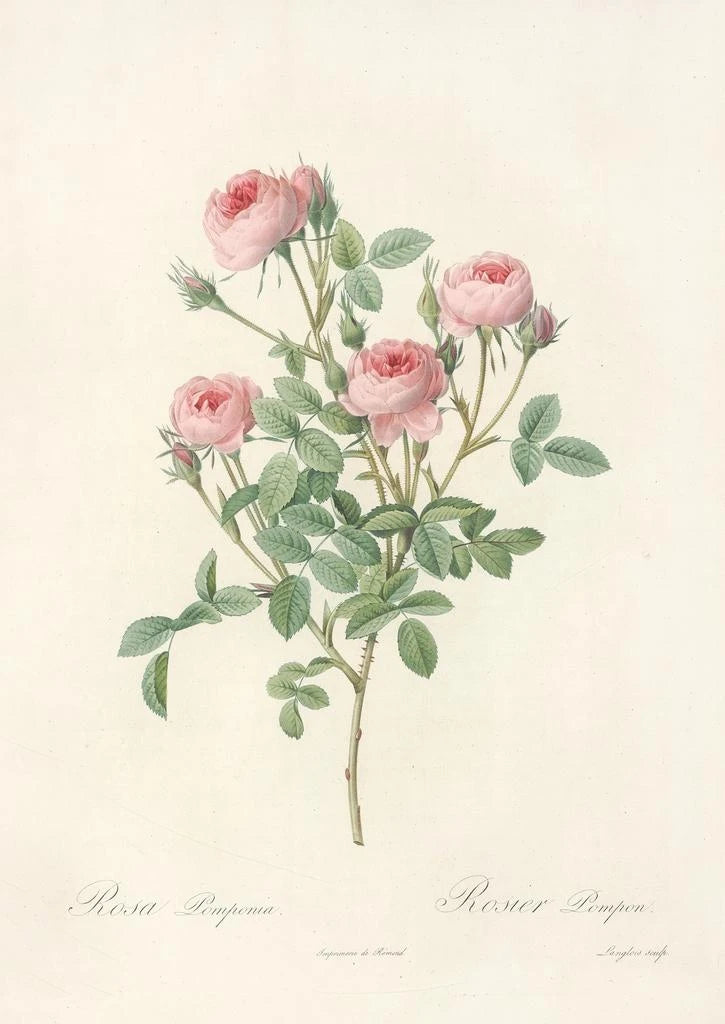 Gemälde Rosa Pomponia - Pierre Joseph Redouté | Kunstdruck