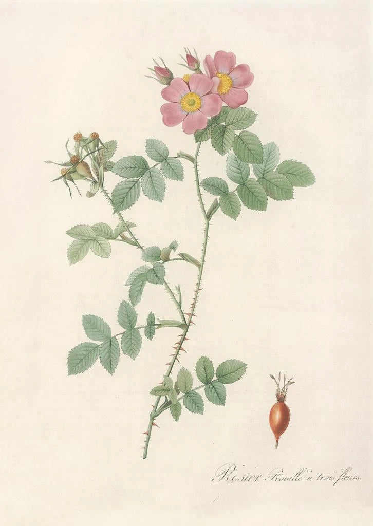 Gemälde Rosa Rubiginosa Triflora - Pierre Joseph Redouté | Kunstdruck