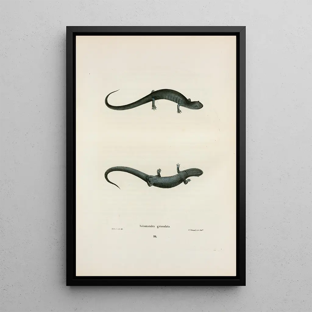 Salamander mit körniger Textur: Eine Reise ins Herz der Natur Die kunstdruck der körnigen Salamander entführt uns in eine Welt, in der die Schönheit der Details mit der Vielfalt der Farben verschmilzt. Mit ihren Nuancen von Braun und Gelb erinnert dieses Werk an die raue Textur der Haut des Tieres und fängt gleichzeitig die Essenz seines natürlichen Lebensraums ein. Die Technik des Künstlers, der präzise und zarte Pinselstriche verwendet, schafft eine lebendige und dynamische Atmosphäre. Jedes Element der Komposition, von Schatten bis Licht, trägt dazu bei, dieser Salamander Leben einzuhauchen und den Betrachter zu faszinieren, der die Feinheit der Natur bewundert. John Edwards Holbrook: Ein Naturforscher im Dienste der Kunst John Edwards Holbrook, aktiv im 19. Jahrhundert, ist bekannt für seine Beiträge zur zoologischen Illustration. Vom naturalistischen Bewegung beeinflusst, verstand er es, Wissenschaft und Kunst zu verbinden und würdigt die Biodiversität durch seine Werke. Seine Illustrationen, oft basierend auf echten Exemplaren, zeugen von genauer Beobachtung und einer Leidenschaft für die Tierwelt. Holbrook spielte eine entscheidende Rolle bei der Dokumentation amerikanischer Arten, und sein kunstdruck der körnigen Salamander ist ein perfektes Beispiel für sein Engagement, die Schönheit der Natur einzufangen und gleichzeitig die Öffentlichkeit über die Wunder der Tierwelt aufzuklären. Eine dekorative Anschaffung mit vielfältigen Vorteilen Die Wahl eines kunstdrucks der körnigen Salamander bedeutet, ein dekoratives Stück zu wählen, das Ihr Interieur bereichern wird. Ob im Wohnzimmer, im Büro oder im Schlafzimmer, dieses Bild verleiht Eleganz und Neugier. Die Druckqualität garantiert eine Farbtreue und Detailgenauigkeit des Originalwerks, sodass Sie seine ästhetische Anziehungskraft im Alltag genießen können. Durch das Hinzufügen dieses Leinwandbildes zu Ihrer Dekoration laden Sie nicht nur ein Element der wilden Natur in Ihren Raum ein, sondern auch eine Diskussion über Kunst und Biodiversität.