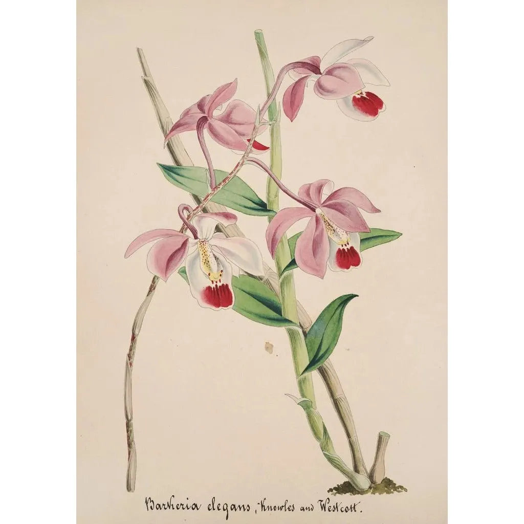 Der anonyme Künstler hinter diesem Werk repräsentiert eine florale Kunsttradition, die mehrere Jahrhunderte zurückreicht. Darstellungen von Orchideen, Symbol für Schönheit und Eleganz, haben Künstler stets fasziniert, insbesondere während der viktorianischen und edwardianischen Perioden. Diese Werke zeugen von einer Sensibilität für die Natur und einer technischen Meisterschaft, die die Zeit überdauert. Das Fehlen eines Namens unterstreicht die Universalität dieses Stils und ermöglicht es jedem, sich mit der zeitlosen Schönheit der Blumen zu identifizieren. Dieses Gemälde, obwohl ohne bekannten Urheber, gehört zu einer kunsthistorischen Strömung, die reich an Bedeutungen und Emotionen ist.
